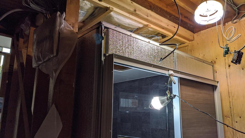 こちらはシステムバスの天井裏。天井にも断熱が貼ってあります。