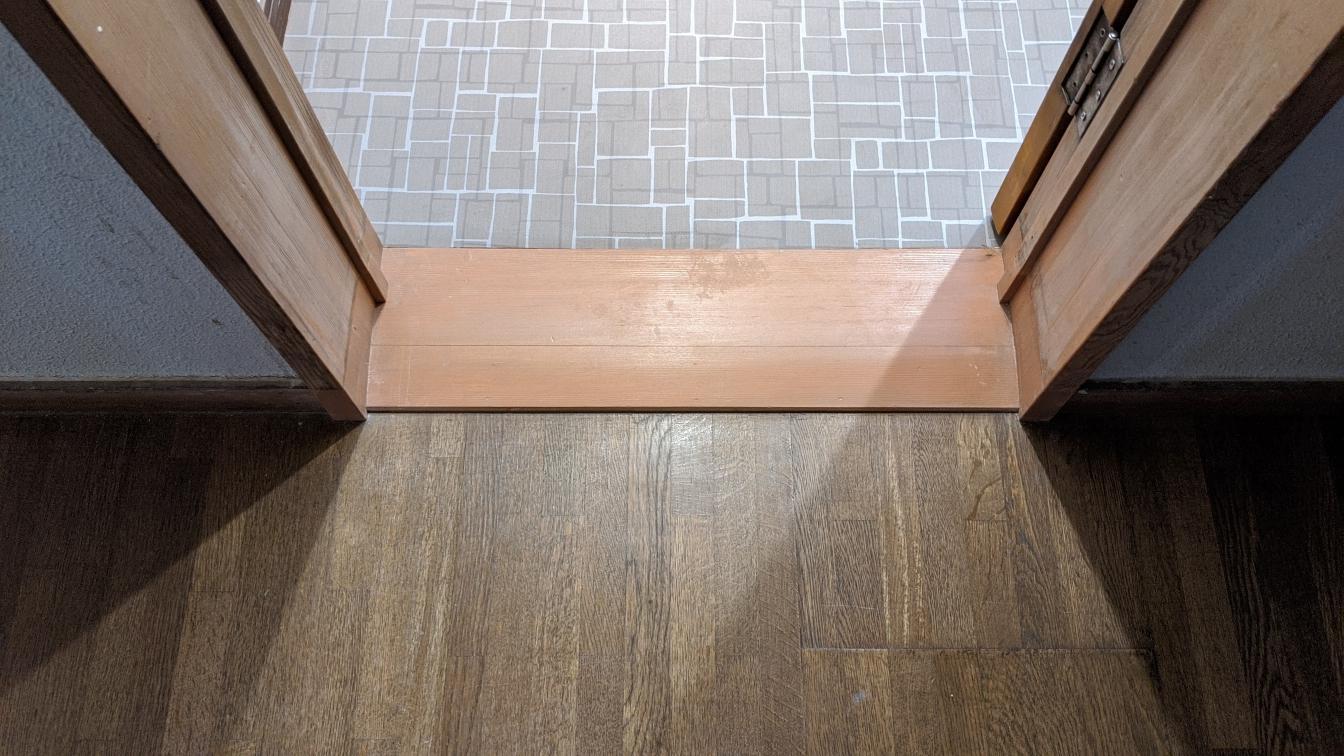 便所入り口はバリアフリー化致しましたが廊下を将来重ね張にてフローリングなどをリフォームしても対応出来るよう