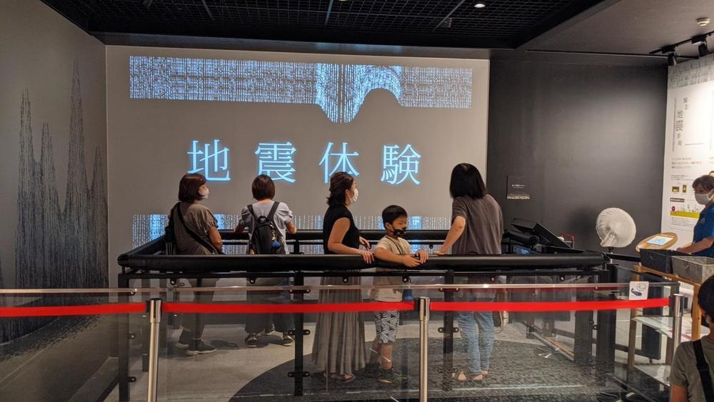 地震体験は手摺の付いた機械に乗り震度7を体験します!