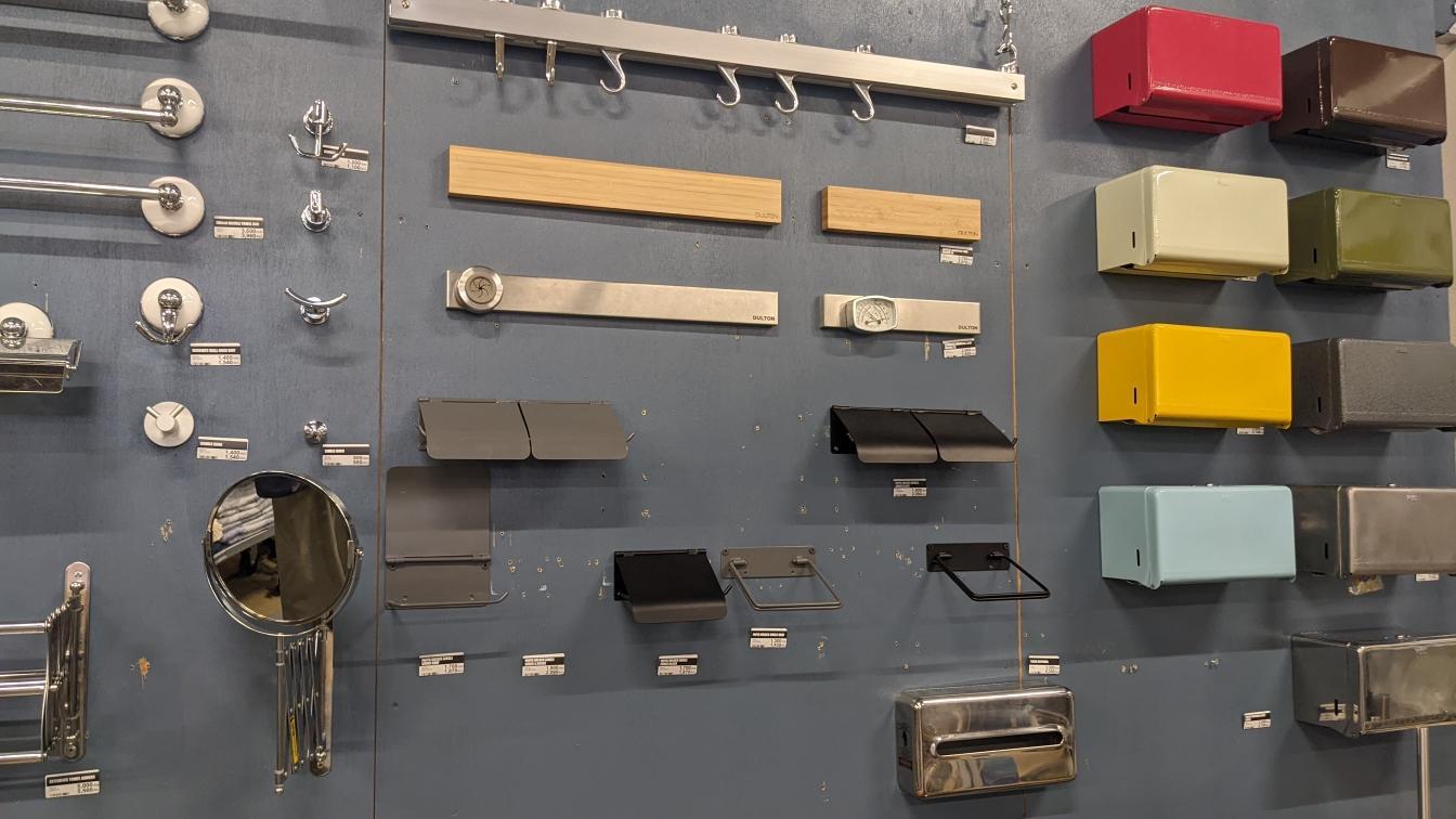 洗面室やトイレでも使えるアメリカンな資材が豊富にありました。