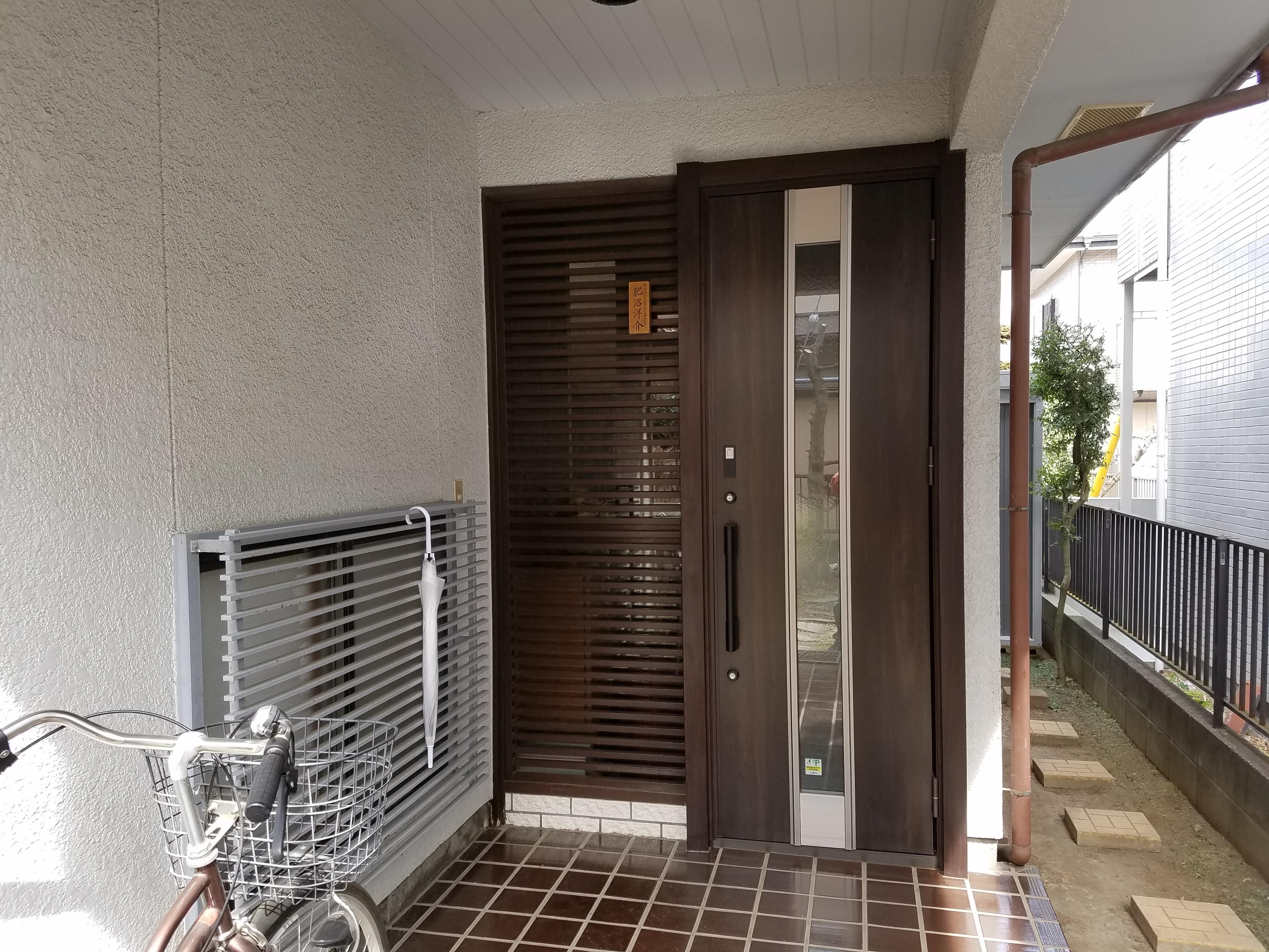 既存玄関ドアが木製で兆番やドアノブの不具合が発生していたためLIXILリシェントⅡをご提案。 通常の鍵に加えオプション電気配線不要電池式カザスを採用したことによりご家族全員カードキーで開閉が出来るシステムを採用しました。 カードキーは万が一紛失しても紛失したカードだけを無効に出来る仕組みでご家族皆さんご安心してご利用しています。