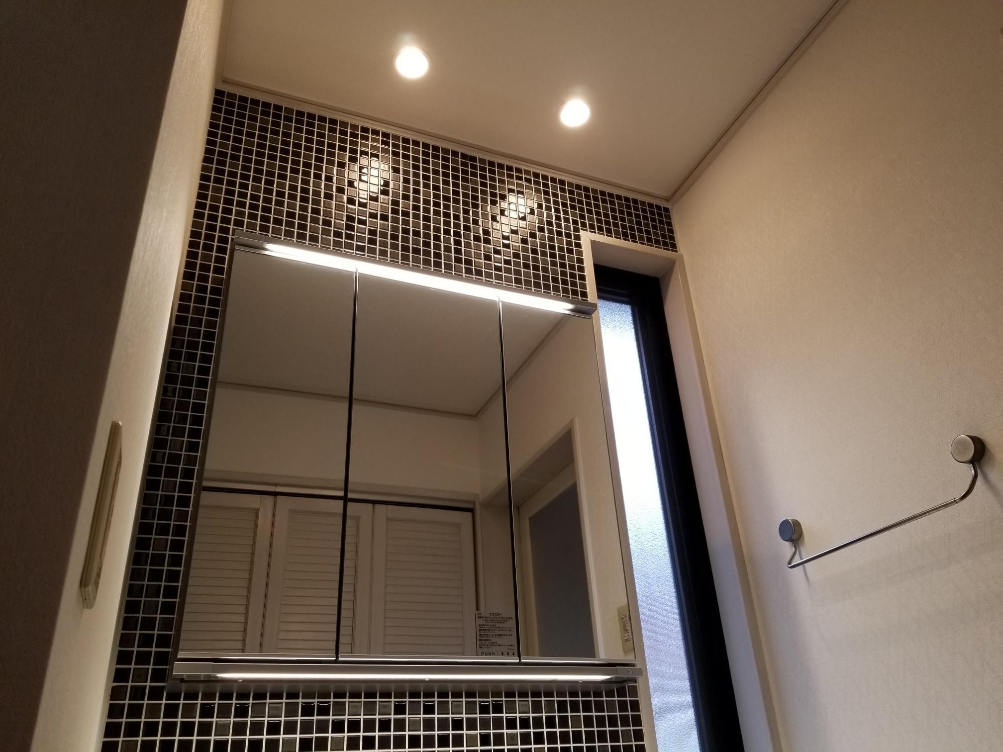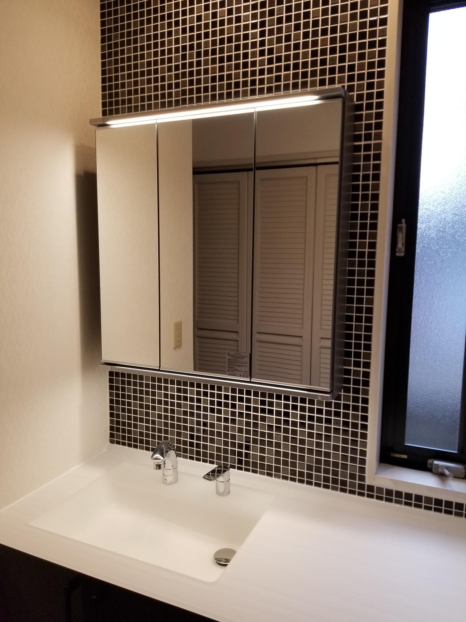 使い勝手をそのままに洗面所をリニューアル。奥様のお気に召したモザイクタイルも際立ちます。