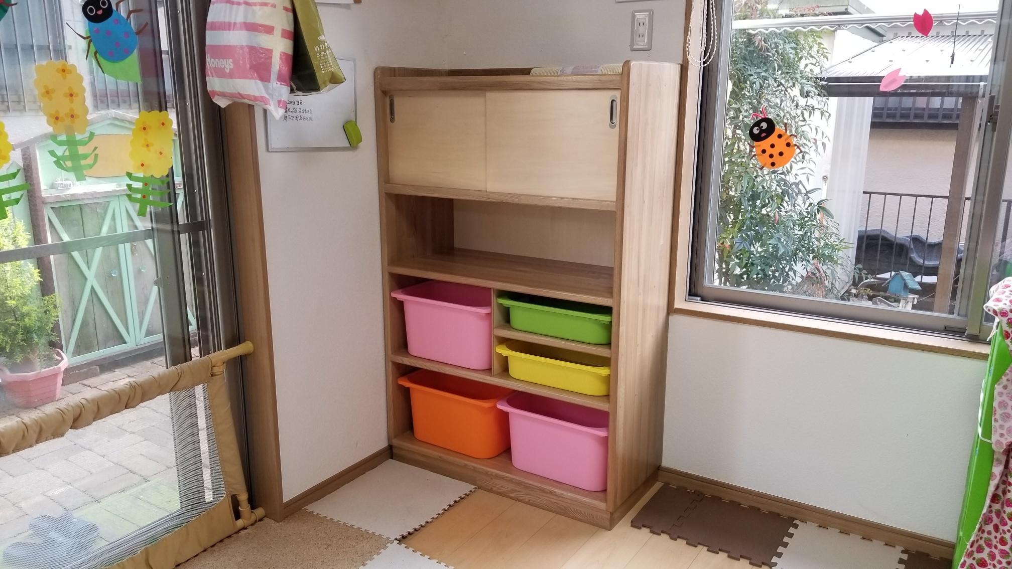 お得意様の保育室園長より使い勝手の良いジャストサイズの家具をご依頼いただきました。 既にサイズや詳細はお客様で簡易的な図を描いていただいてたのでスムーズにお打合せが出来ました。 某家具ストアでご購入のおもちゃ箱をピッタリに収納したくて試行錯誤しましたが大変喜んでいただけて良かったです。