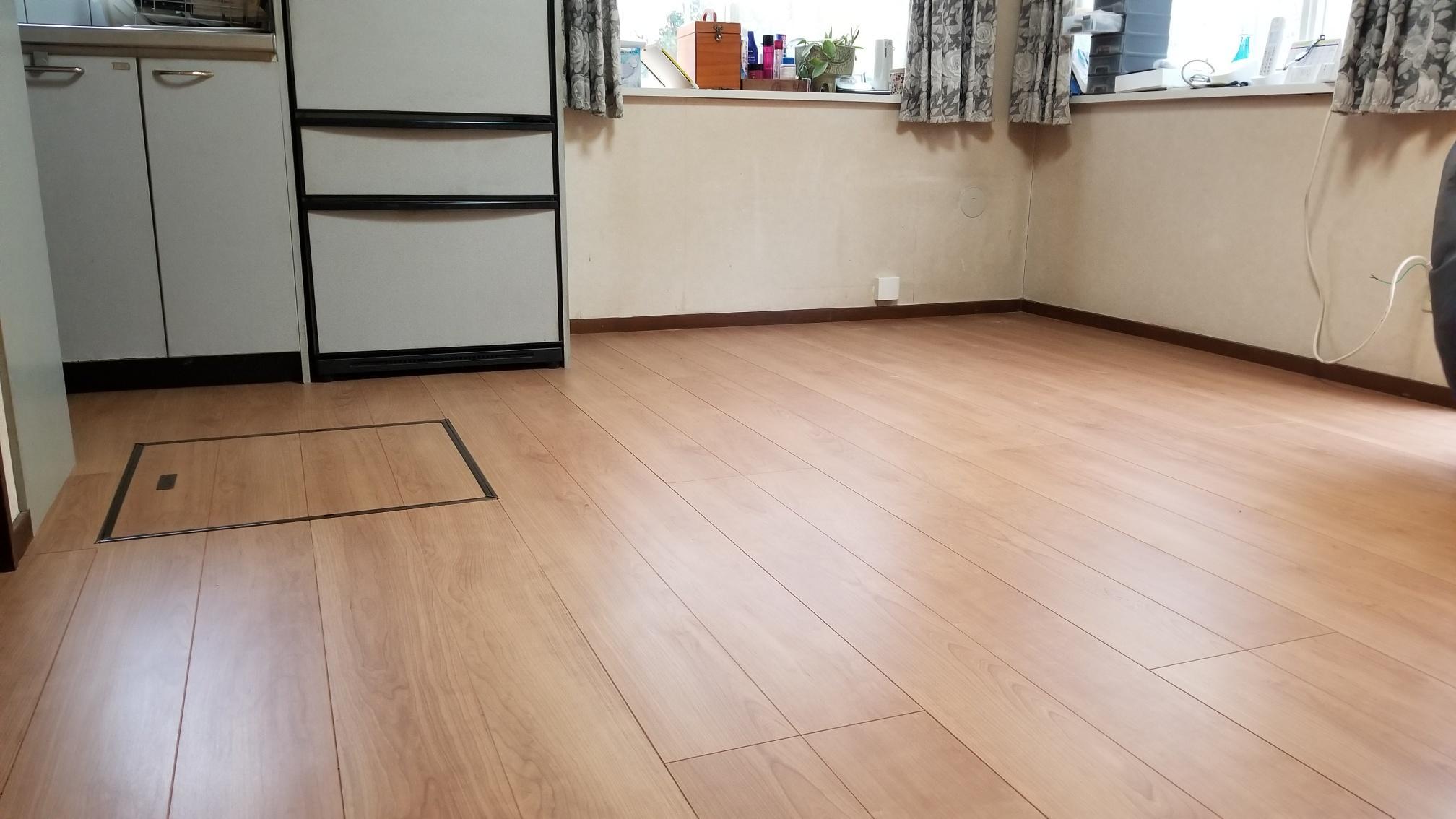 リビングと和室をフローリング化したいとのご希望で改修をする前に床下の白蟻点検を実施。白蟻は発生していなかったものの和室床下が湿気が多く木材の一部に白蟻が破損を引き起こしていました。床下には断熱材を施工し床も2重張りにした事で非常に強固な床に仕上がりました。