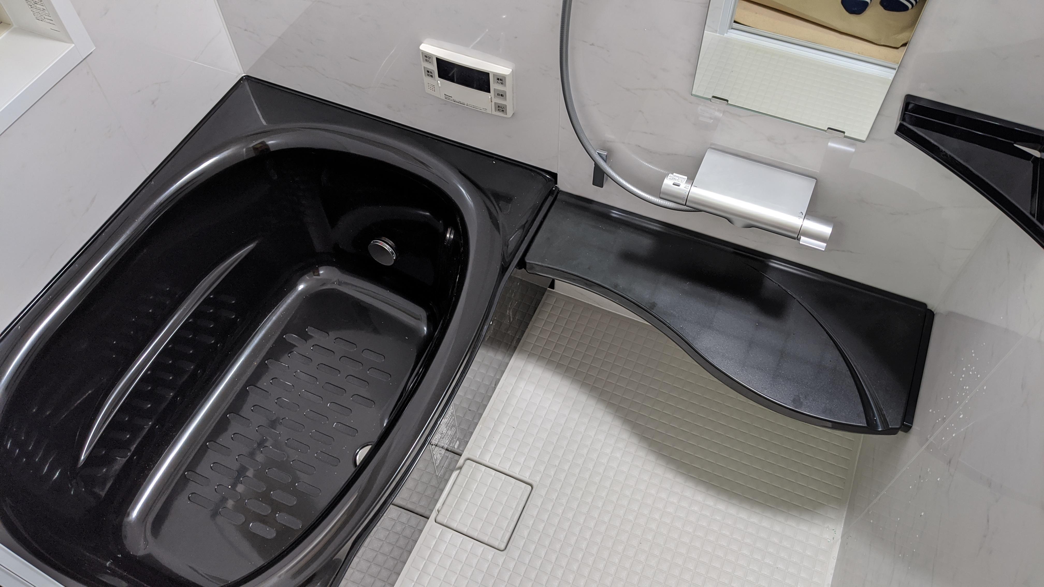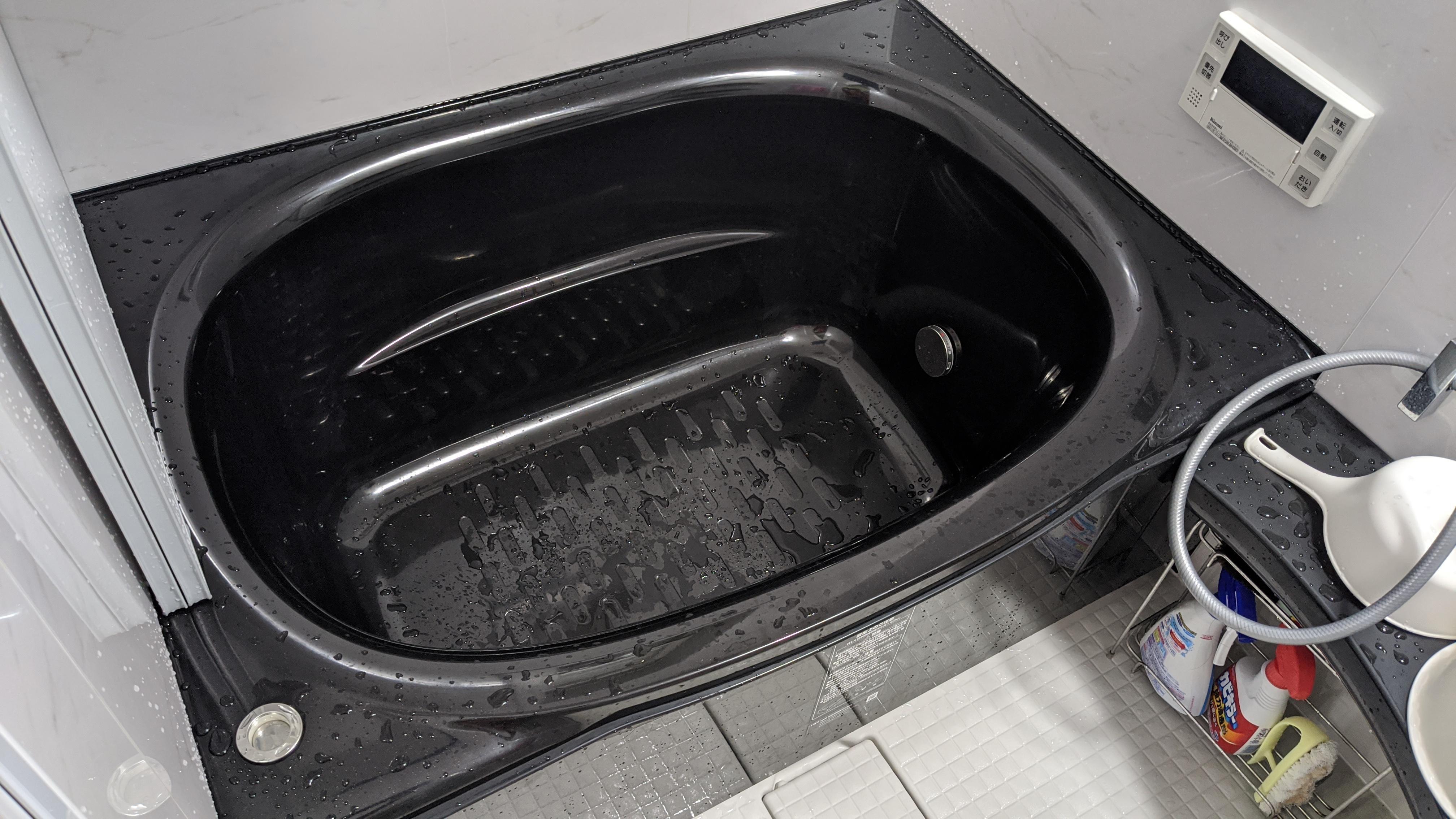 弊社のお客様のご紹介でエリア外でしたが浴室改修を施工させていただきました。奥様のご希望によりちょっとシックなイメージをご希望でしたのでブラックの浴槽をご採用。既存窓は断熱性の低い単板ガラスのルーバー窓でしたので浴室が寒かったとのご相談でした。解体してみると浴室内のみ外壁に断熱材が無くグラスウール断熱材を施工させていただきましたのでお部屋の断熱性能も向上しました。