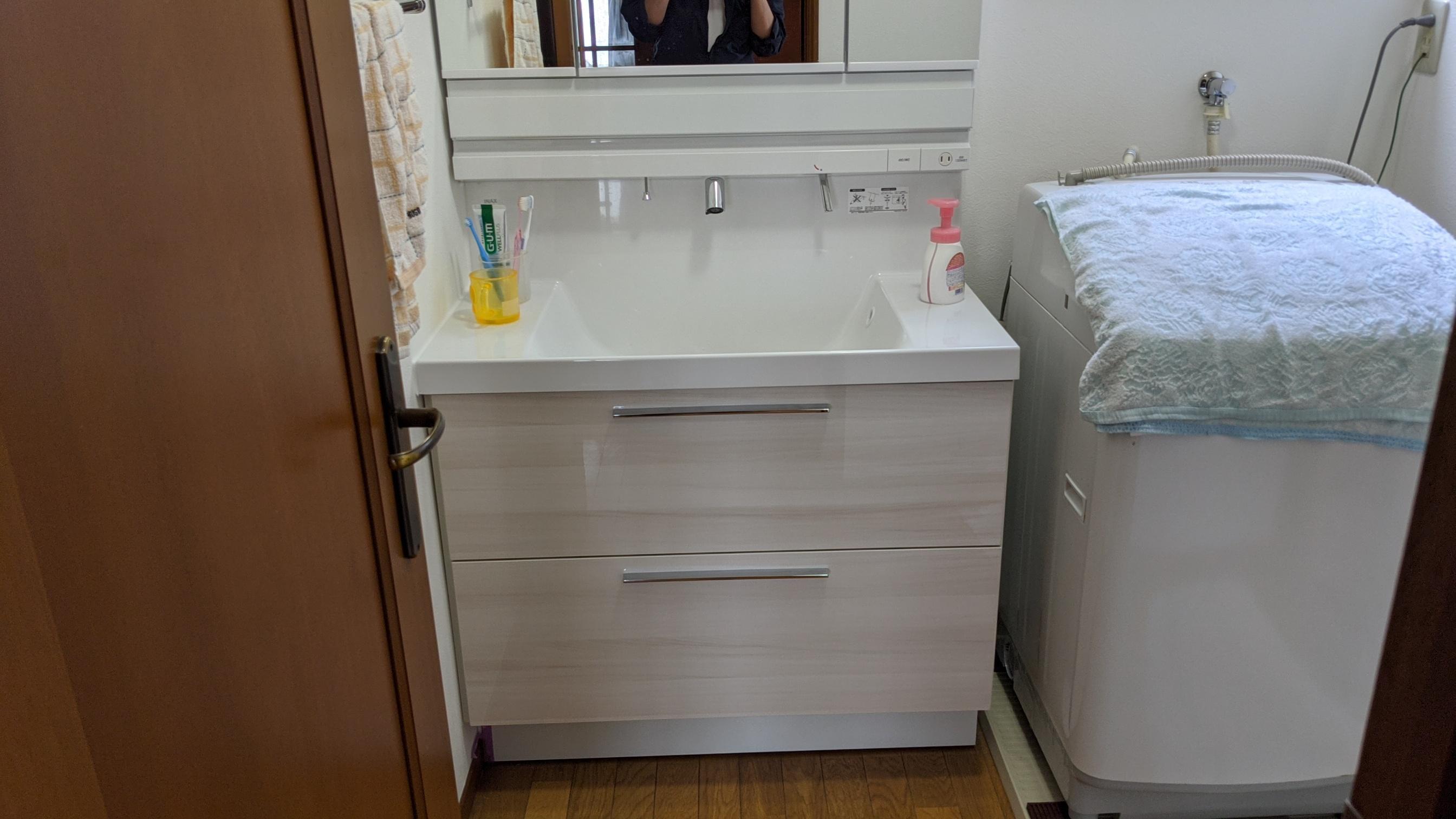 中古住宅をご購入されて水回りを一新したく悩んでおられました。LIXILショールームをご見学されLIXIL提携店の当店にご依頼いただきました。新型コロナウイルス感染の時期でお客様も不安のご様子でしたので工事にお伺いする全ての業者は毎朝検温を行いアルコール消毒液を持参して作業にあたらせていただきました。既存の浴室もドアが破損しておりましたのでメーカーメンテナンスを代理手配させていただきましてリニューアルできました。