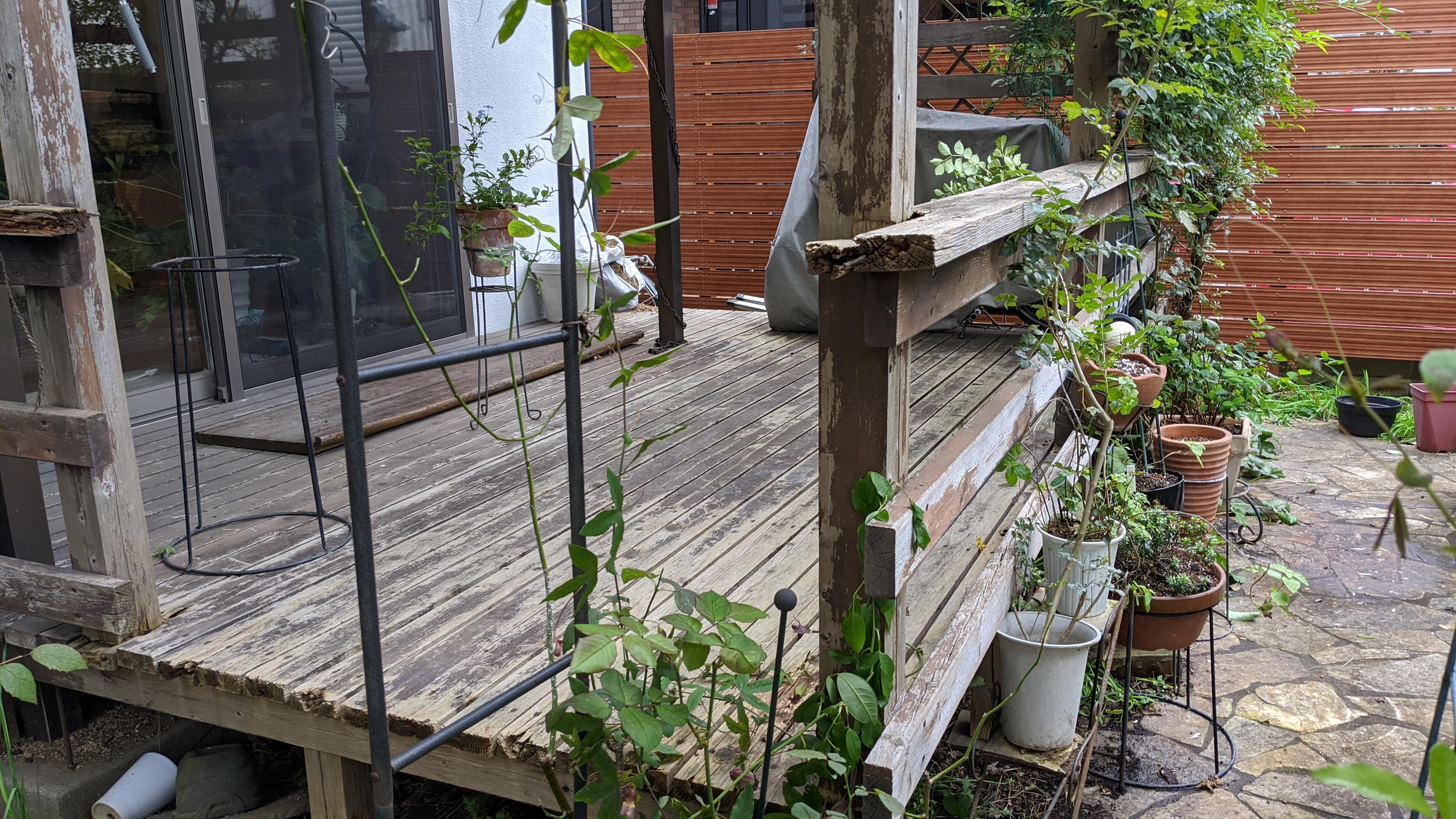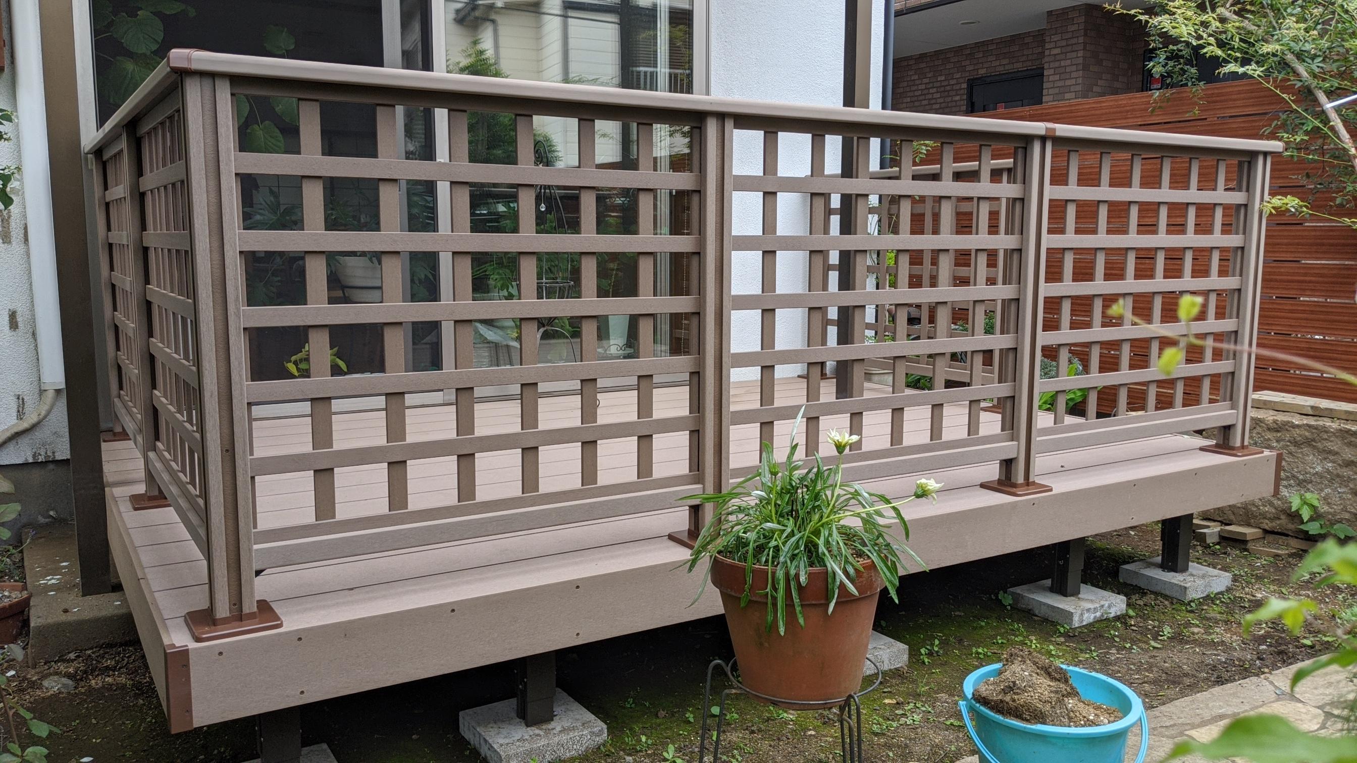 木製ウッドデッキやオーニングが老朽化して劣化を気にされていました。腐らない・塗装不要のウッドデッキをご提案。オーニングも交換しまして建物の玄関や雨戸の木部を塗装させていただきました。新型コロナウイルス感染拡大によりウッドデッキ工事が若干遅延となりましたが6月を迎えて全ての工事が完了となりました。