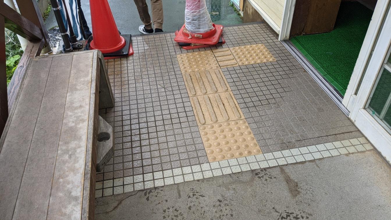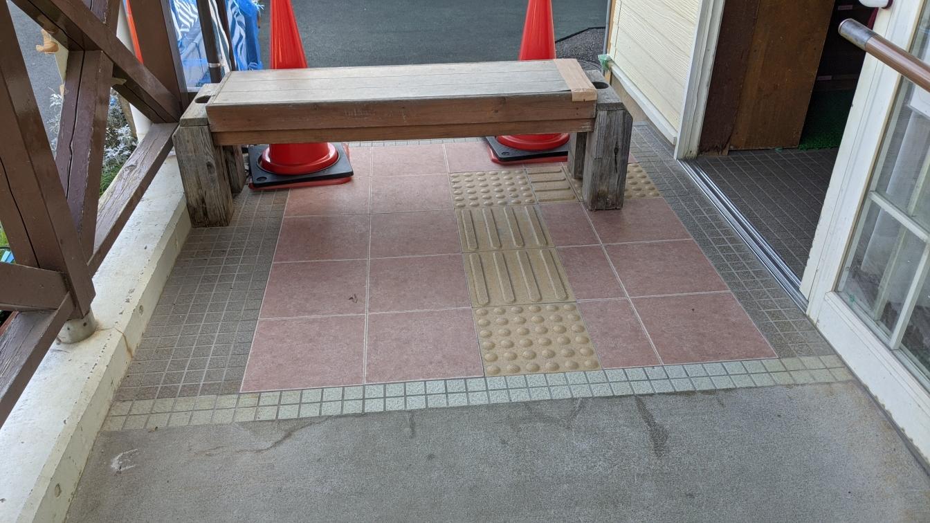 地元学童クラブより玄関付近の滑りにくいタイル改修・防炎加工のカーテン・子供たちが道路に飛び出さないよう手摺の設置をご依頼いただきました。