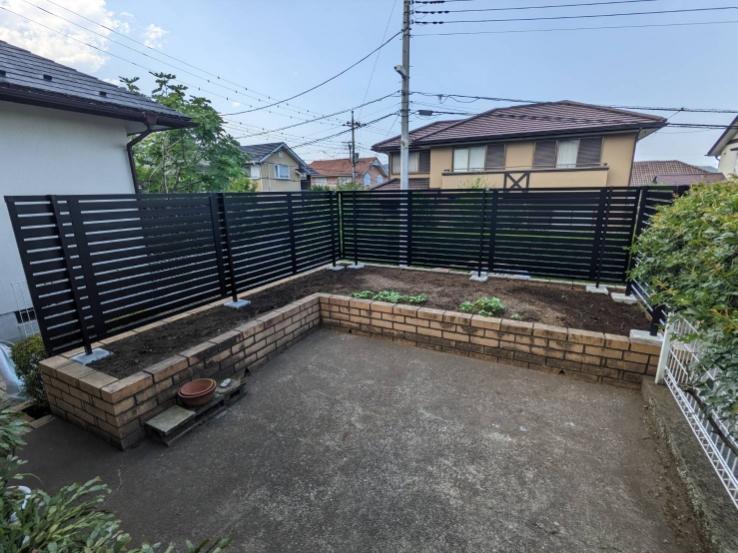 お庭の生垣のお手入れが大変とのお話をいただき、脱落防止も兼ねてフェンスに改修致しました。 これから家庭菜園をする奥様にご安心していただける空間が完成しました。