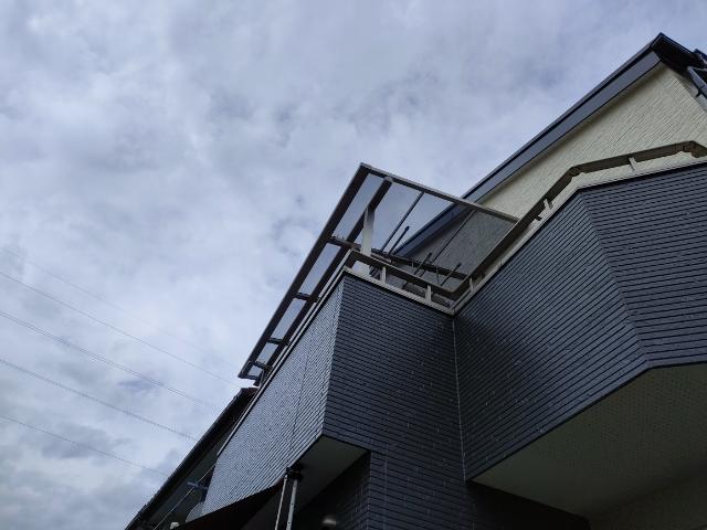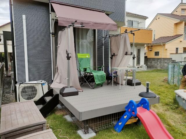 2階のベランダに屋根・外の庭にウッドデッキをご検討されました。