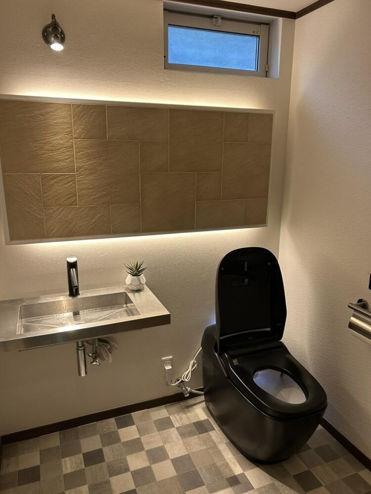 以前INAXブランドで販売されていたセンシアアリーナ便器よりサティスXに交換されたLIXILユーザーのお客様です。サティスXの柔らかく美しいフォルムと掃除のし易さが決め手となりました。色は内装との兼ね合いでブラックを選択。センシアアリーナの白も綺麗でしたがブラックは施工させていただいた私たちも圧巻の存在感を醸し出しています。内装は床のクッションフロアーのみ貼替えさせていただきました。ちなみに交換前のセンシアアリーナ便器は2階のトイレに移設いたしました。