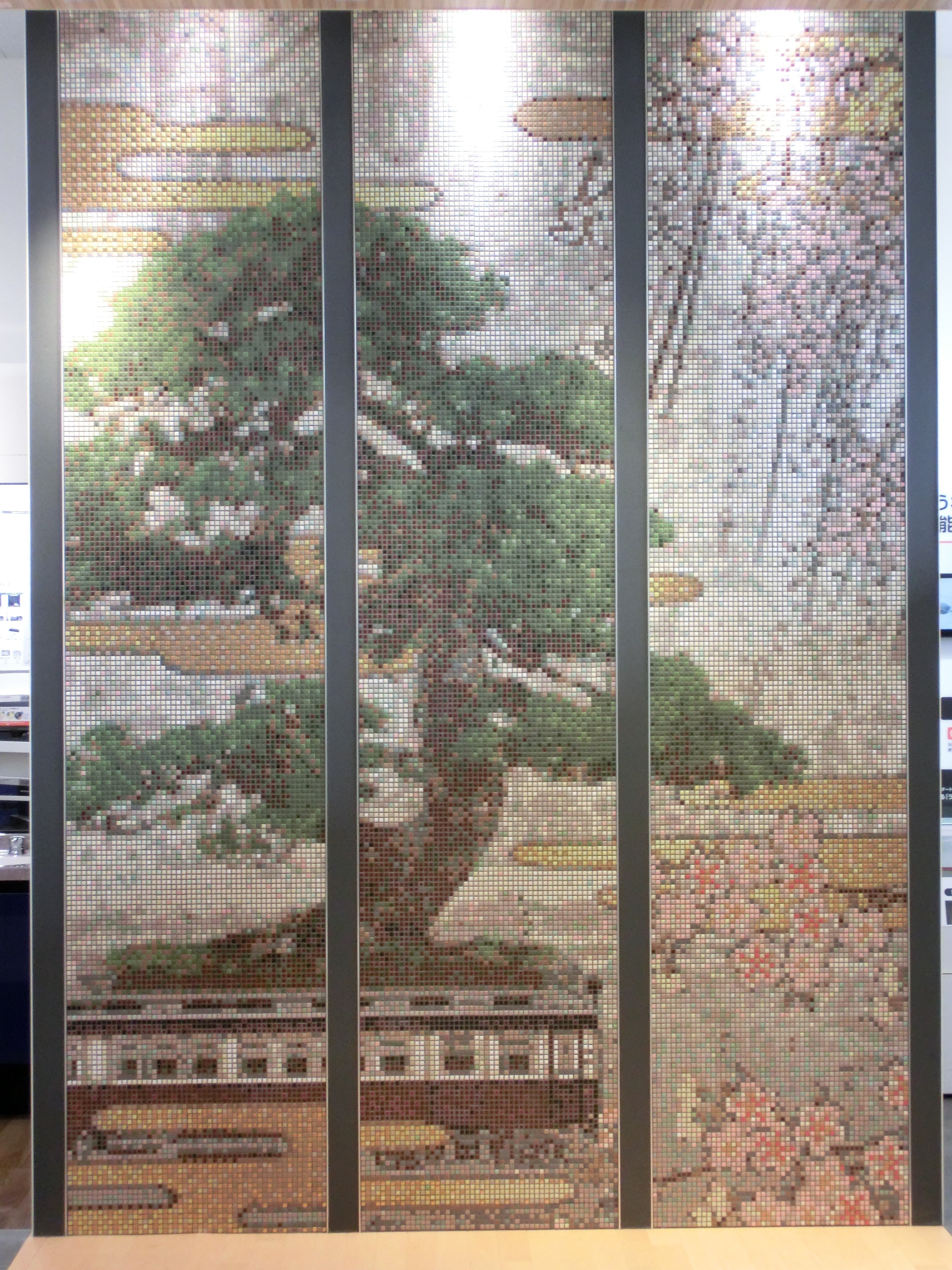 ショールームの目玉になっているのが、奥の壁に飾られた、モザイクタイルで彩られた 壁画 です。