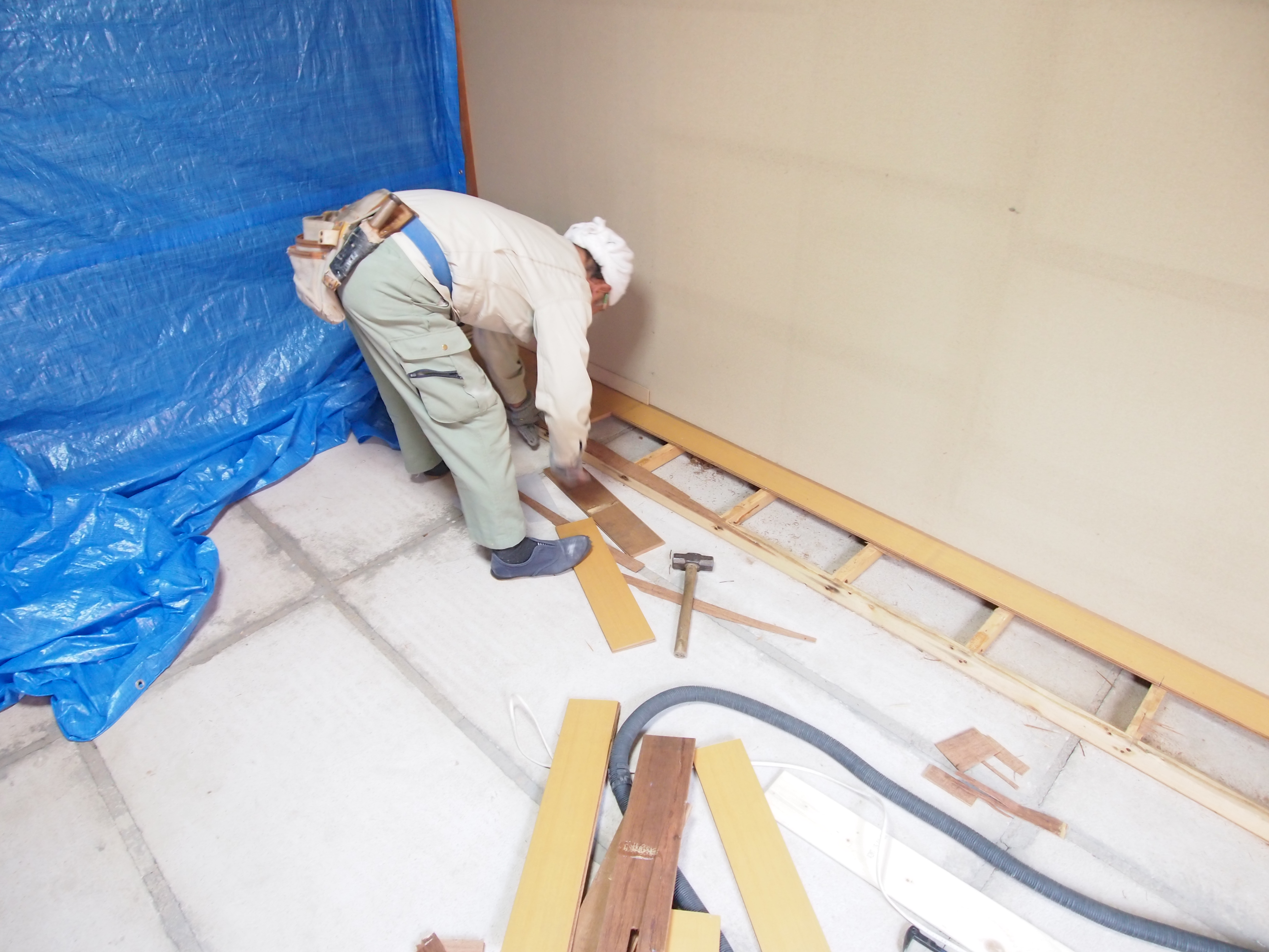 畳のお部屋からフローリングのお部屋にしました。 床下地(へーベル)からの冷気が気になるとのことで、断熱材を敷き詰めました。