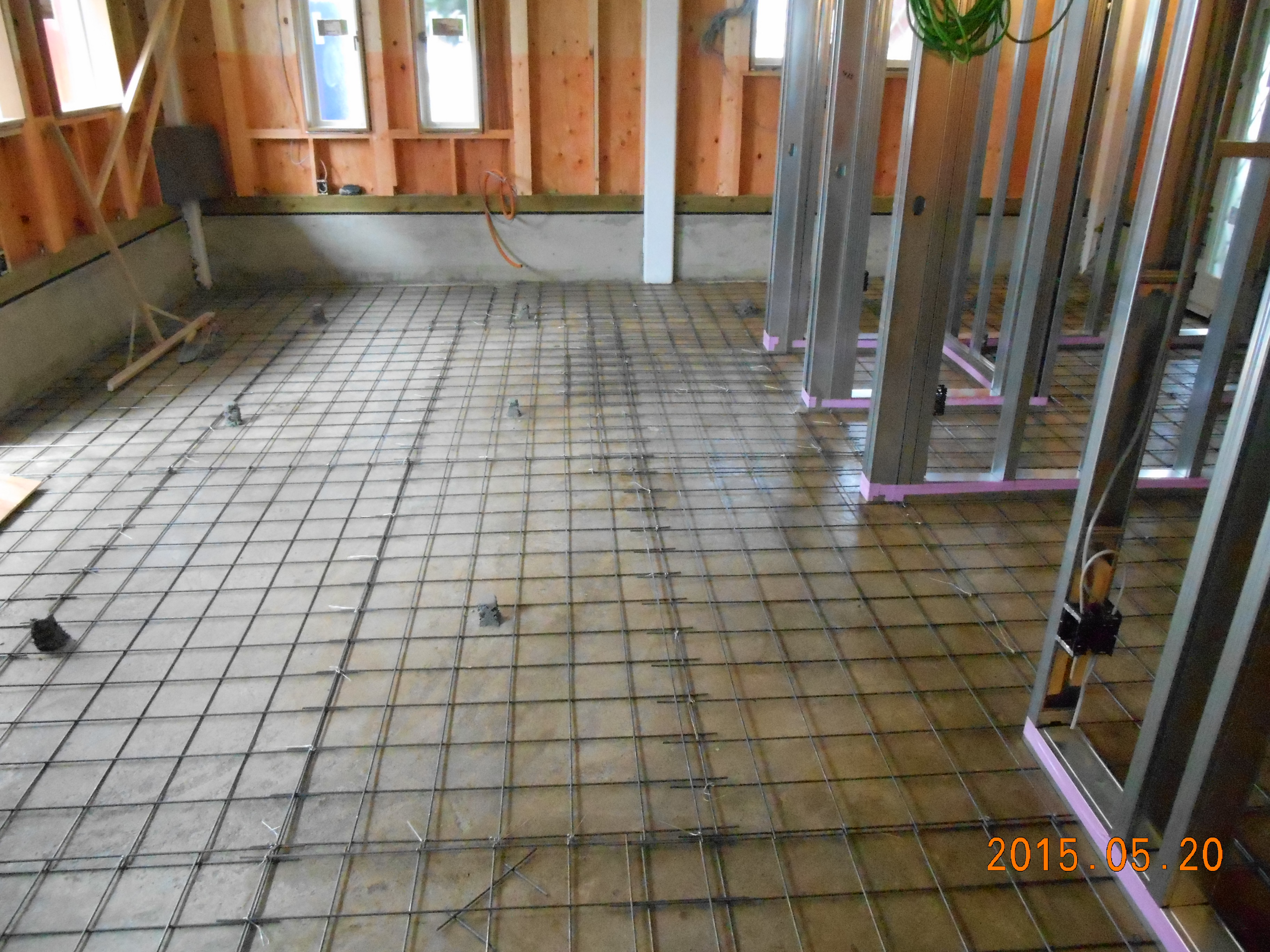 元々は駐車スペースです。スラブ打設後、左官による金鏝仕上げによって、起伏のない床が仕上がりました。