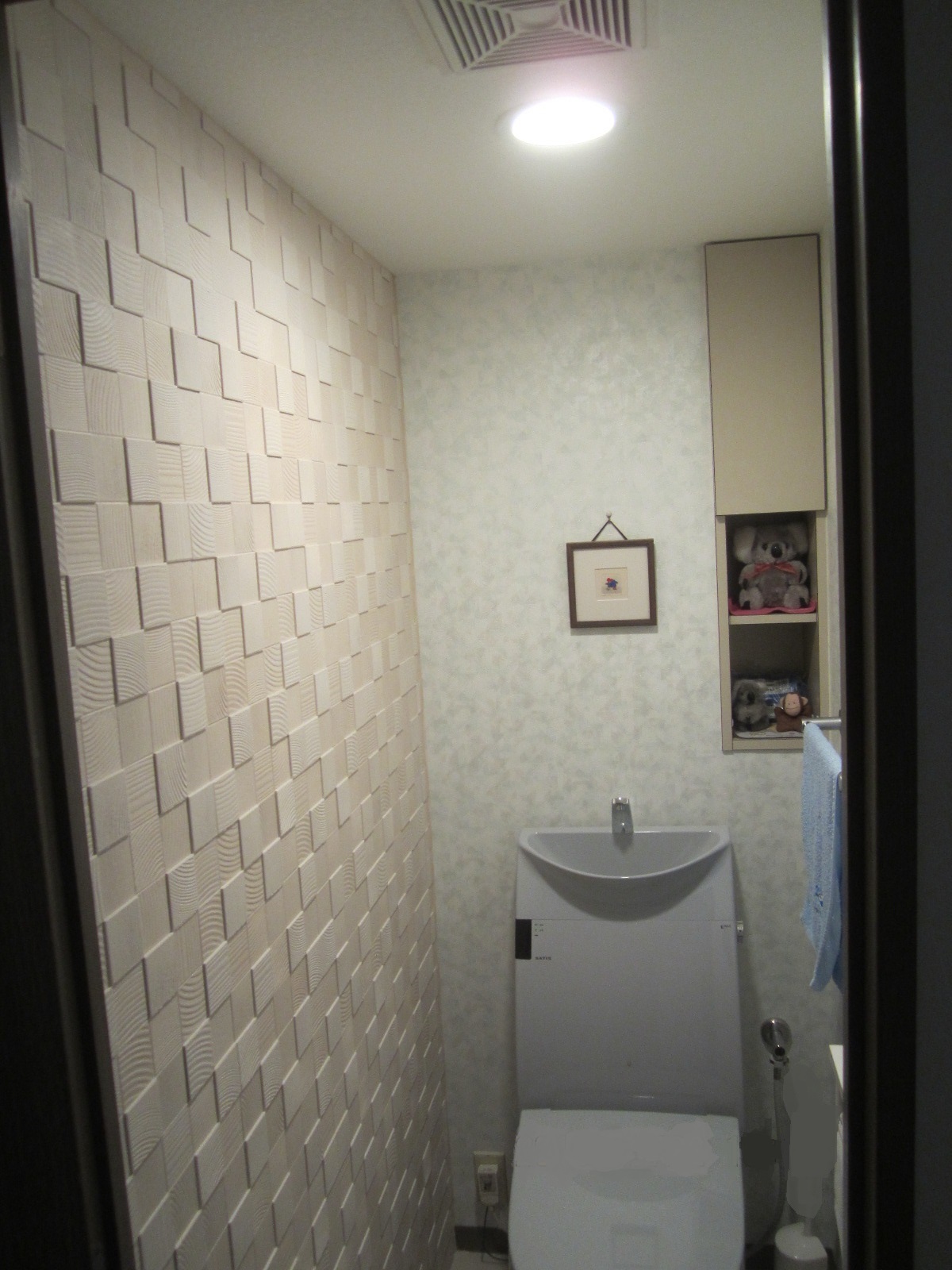 水回りを中心とした改修工事です。キッチンはLIXILリシェルSIの新商品の熱や、汚れに強いセラミックカウンターを使用しました。ハイグレードな扉を使用し、高級感を演出しました。