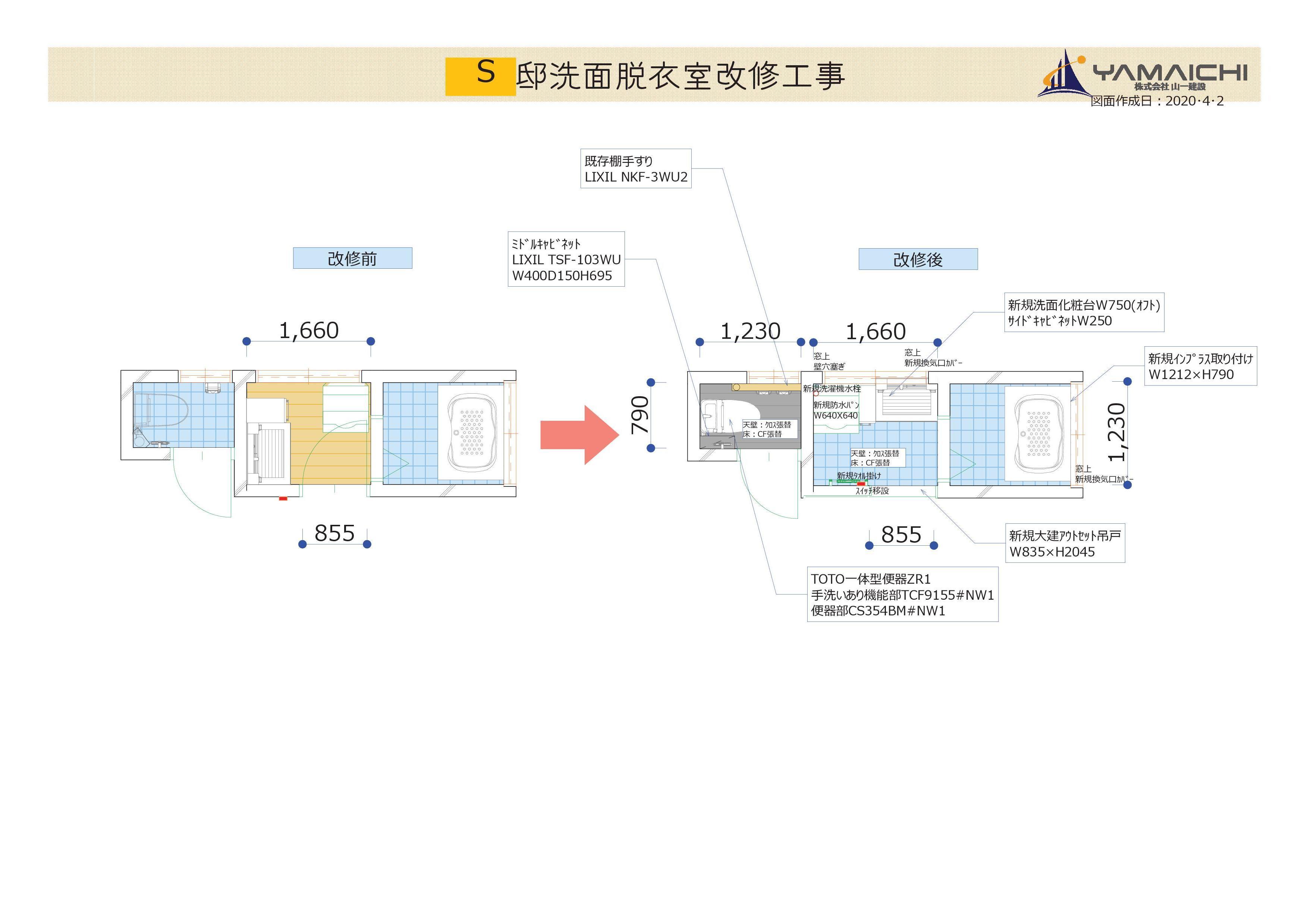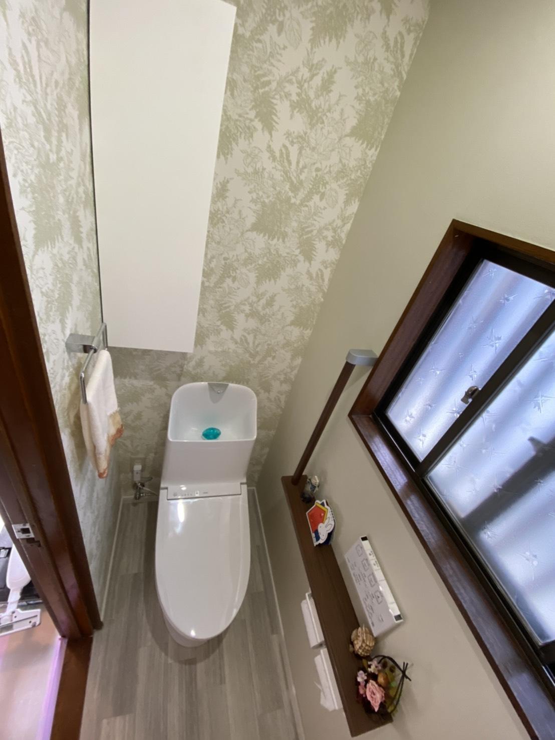トイレはクロスを悩んだだけあって、予想以上の仕上がりでした。狭い空間でしたが、アクセントで貼り分けてもらったのでとても高級感があります。脱衣室も山藤さんに提案してもらうまで気づかなかった、洗面化粧台の配置を変えたり、内開きのドアを引戸に交換したら、諦めていた広い空間が生まれて自分の家じゃないみたいです!現場を見て、すかさず快適な空間を提案して下さる監督さんにさすがプロは違うと実感しました。