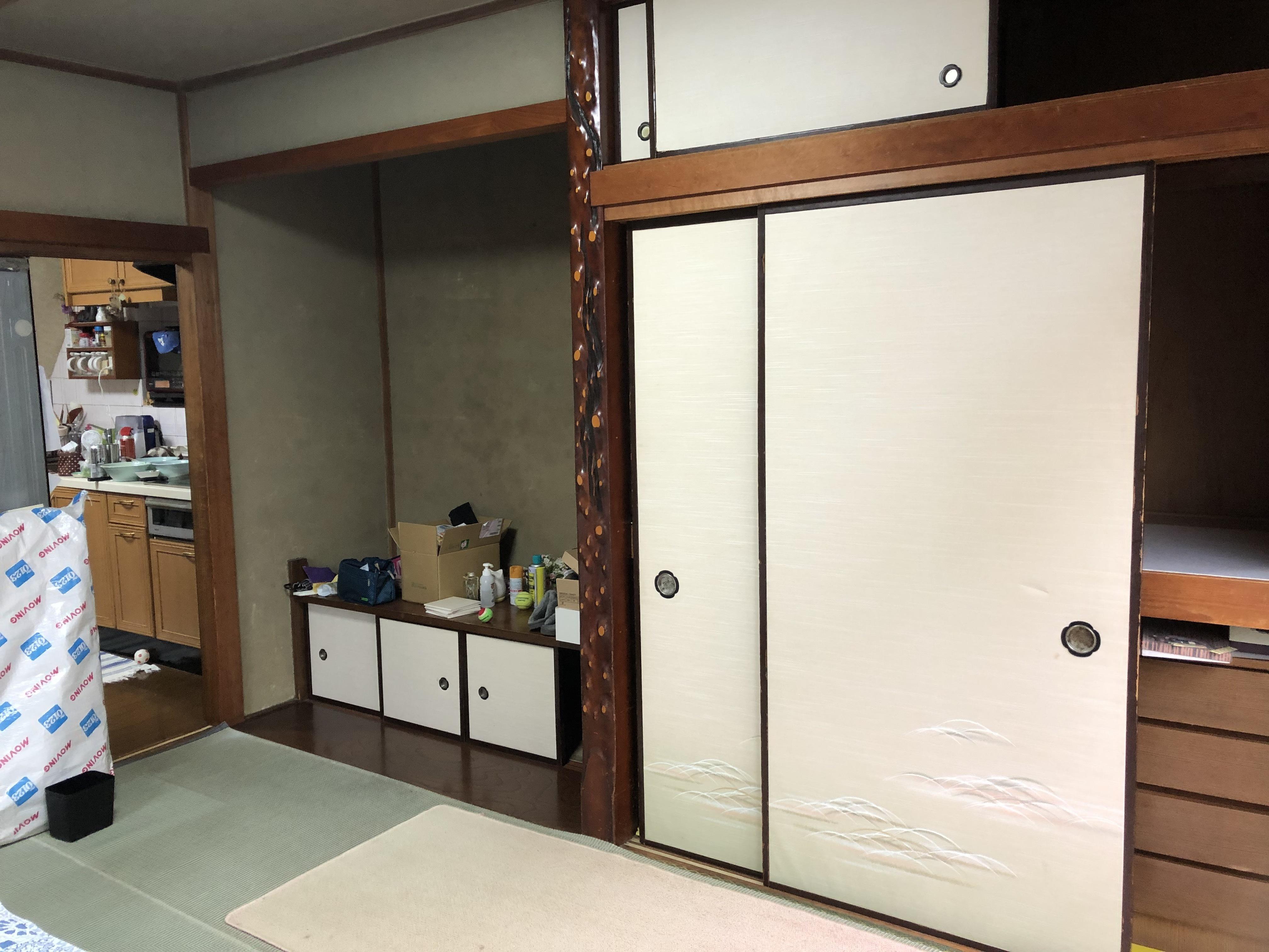 始めは和室の間仕切りになっていた、2間の戸襖を張替えの予定でしたが、耐震性を考えて壁を作ろう ~ 和室を洋間に改修しよう ~ リビング、キッチンを改修しよう ~ 玄関、廊下を改修しよう、、、