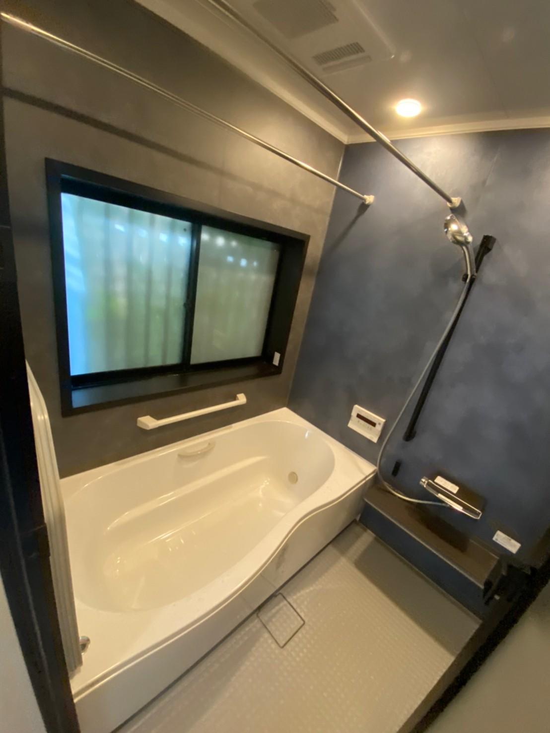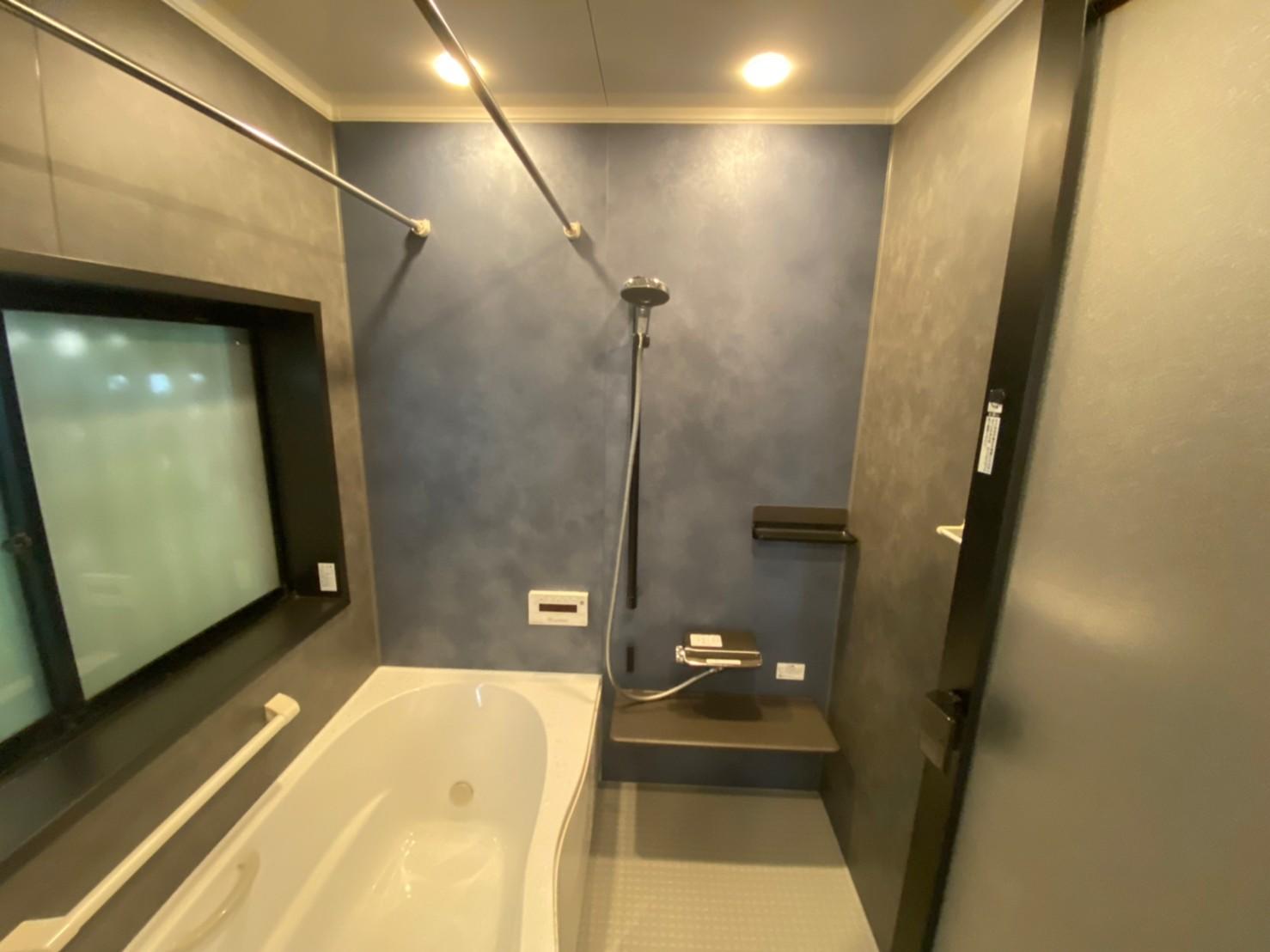 ユニットバスをLIXILリデアにリフォームしました。アクセントパネルは、高級感溢れるモダンなダークブルーに。奥様のセンスが光ります。 換気暖房乾燥機を付けたので、寒い冬でも安心して暖かいお風呂に入れます。