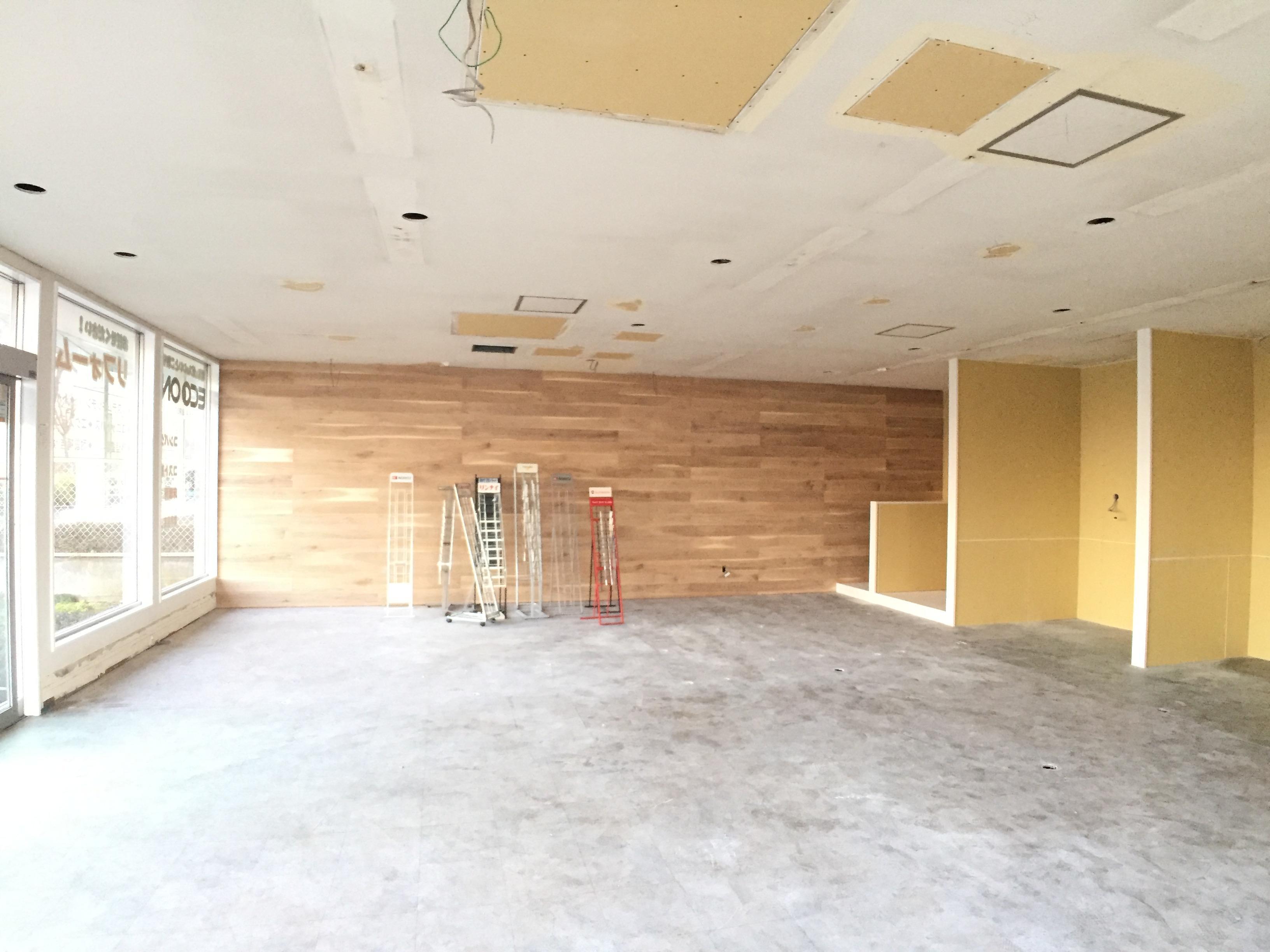 ショールームと事務所の間仕切り壁が新たに作られ、