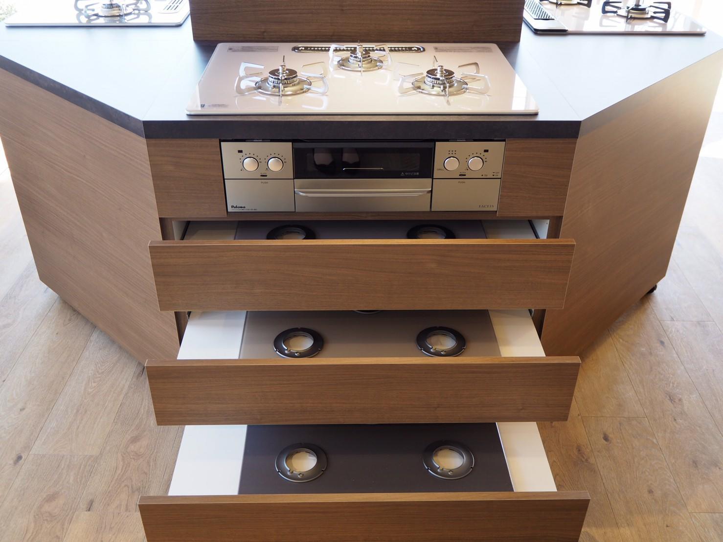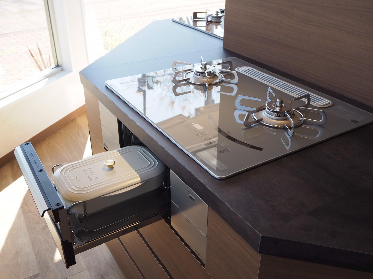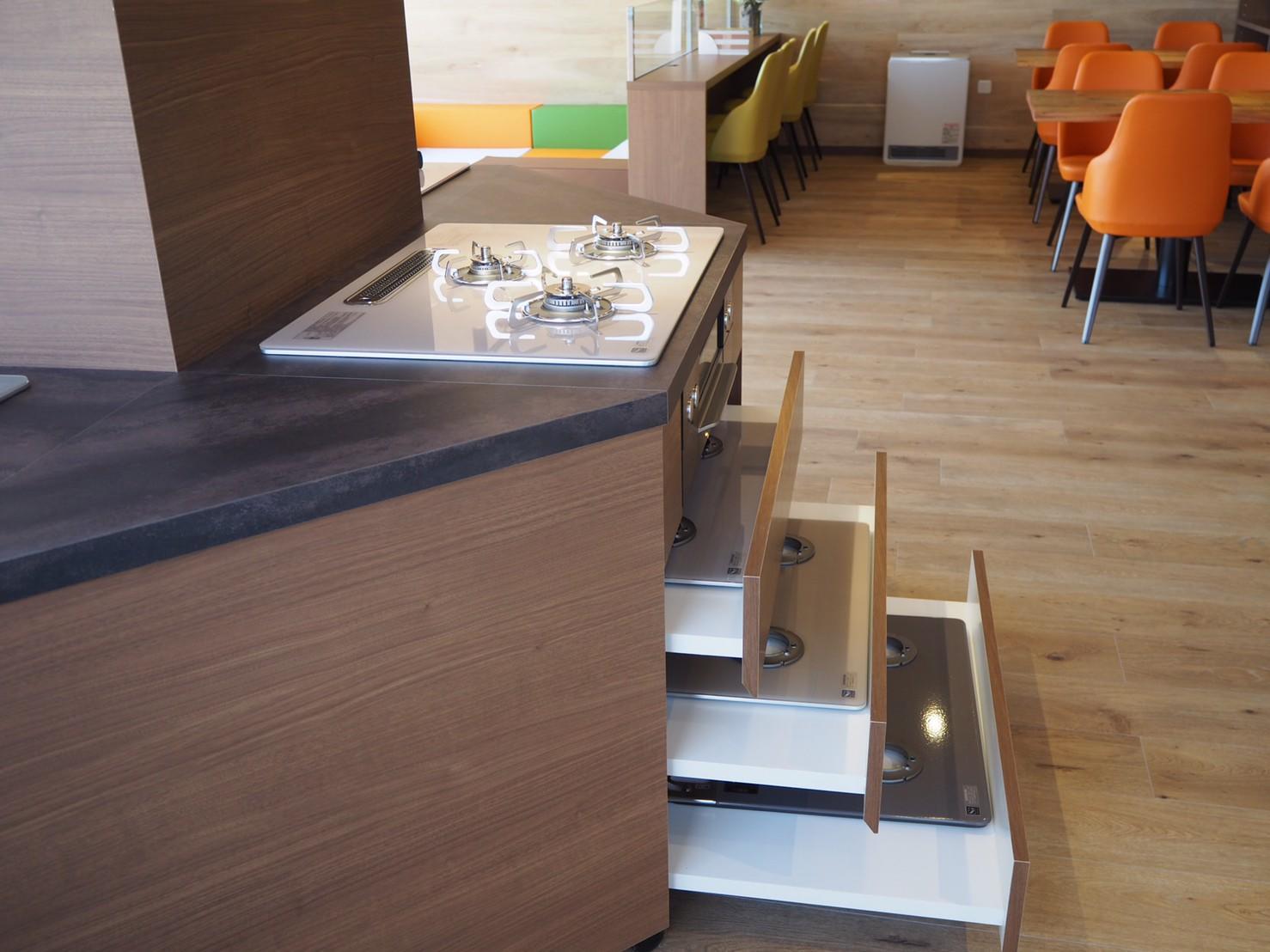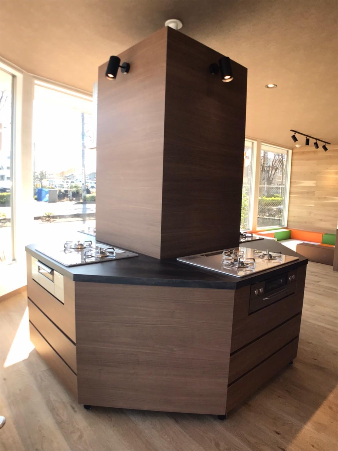展示台の天板は、リクシルキッチンの最上位グレード『リシェルSI』の