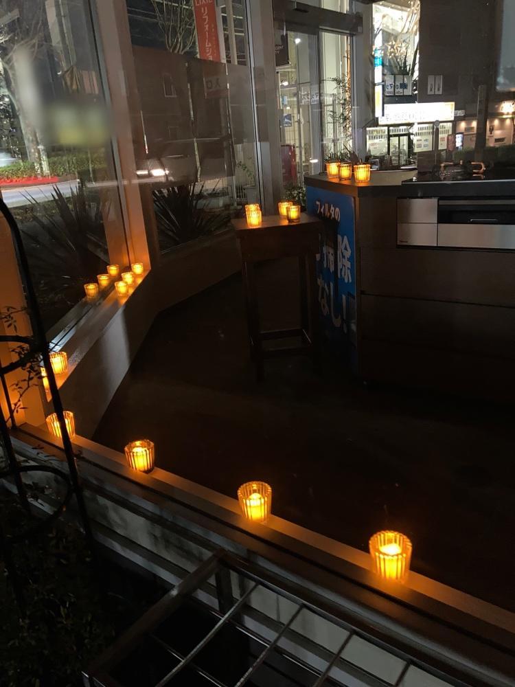 当日は18:00ごろから 看板等を消してLEDキャンドルライトを灯しました。
