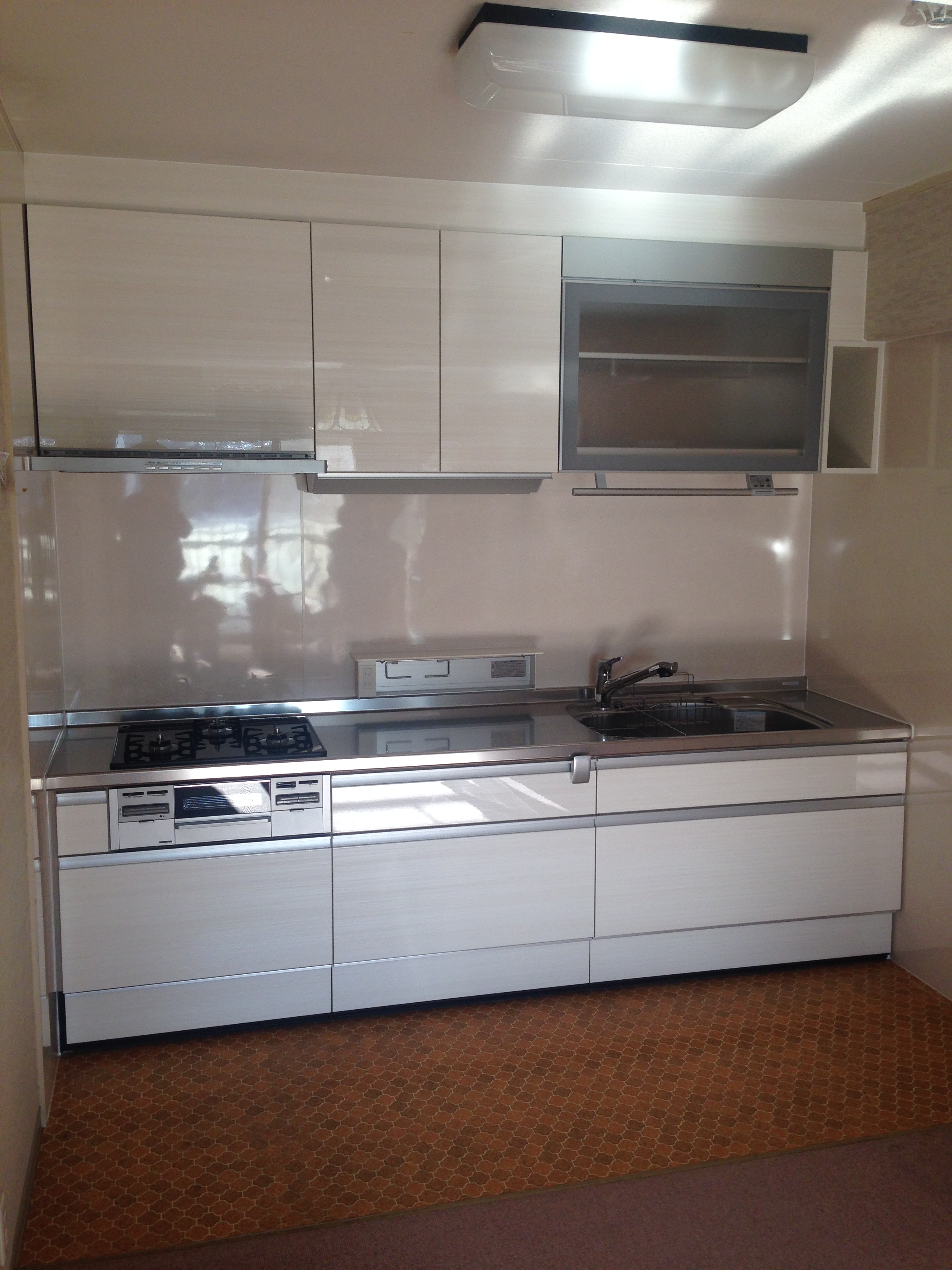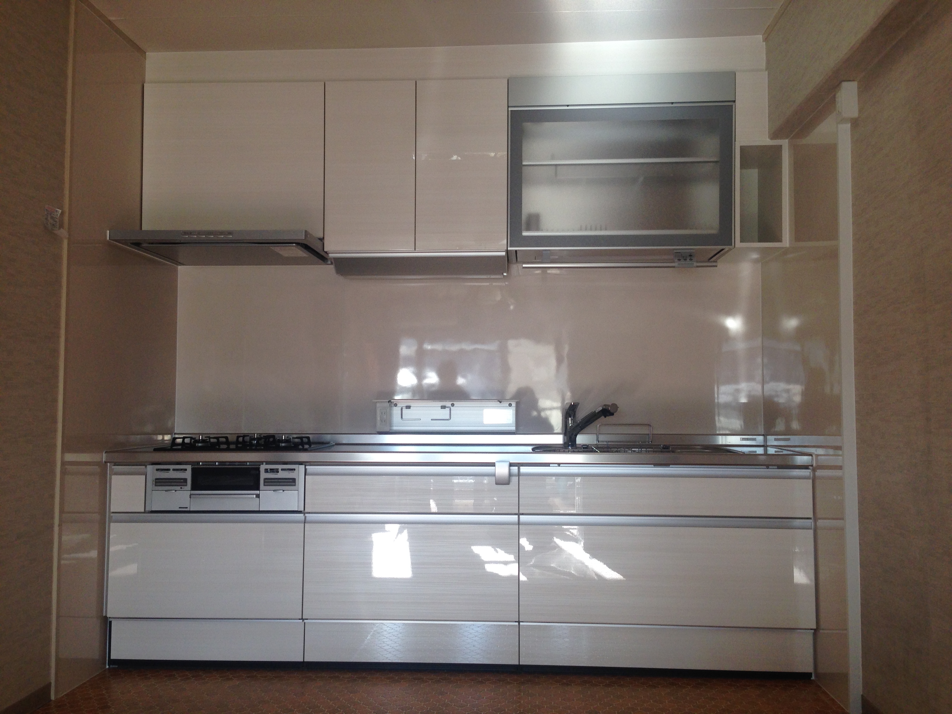 この度、マンションのキッチン改修工事を担当させていただきました。 戸棚の設置高さを既存より低くすることにより、今まで活用できてなかったスペースに収納できるようにしました。 電動リフト機能付きの戸棚も大変満足頂きました。 本来ならデッドスペースになる梁も、手作りの棚を取付けて有効利用しました。 白を主体としたキッチンで全体的に明るくなり、毎日の料理を楽しんで頂いております。