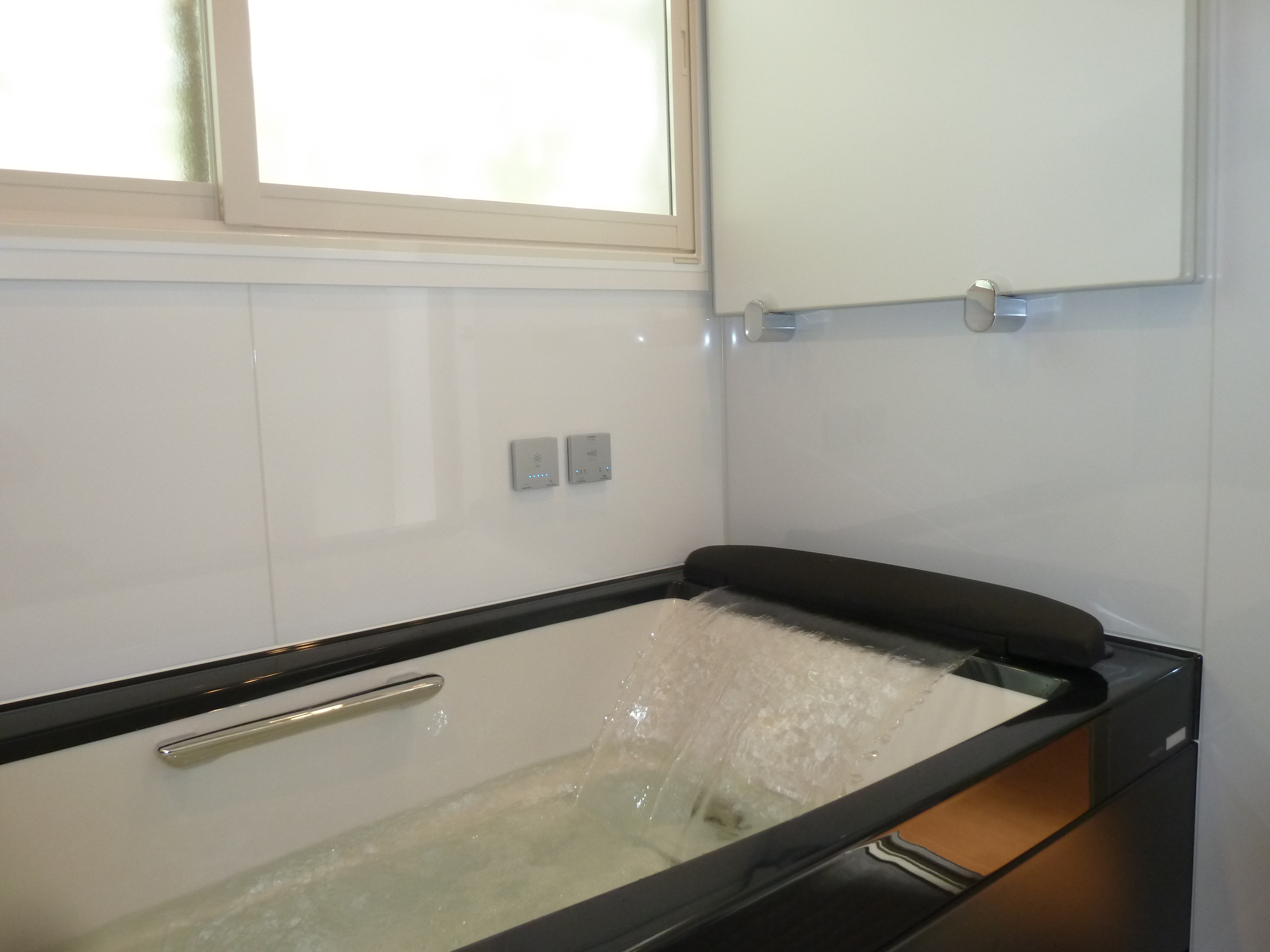この度、浴室・洗面室・キッチン・トイレの水廻り改修を担当させて頂き、今回は浴室改修のご紹介です。 こちらは、LIXILの「スパージュ」という新商品で、「お風呂を愛する国の、バスルーム」というコンセプトで出来上がりました。「アクアフィール(肩湯)」という機能は浴槽の上部から、平らなお湯が流れ、肩をやさしくお湯が包みます。実際にお風呂に入った感想は「お風呂でゆったりと過ごして、心も身体もリフレッシュできて最高!」と、とても満足いただけました。ご家庭のお風呂で気軽に温泉気分を毎日味わいたいというお客様には特にお勧めです。