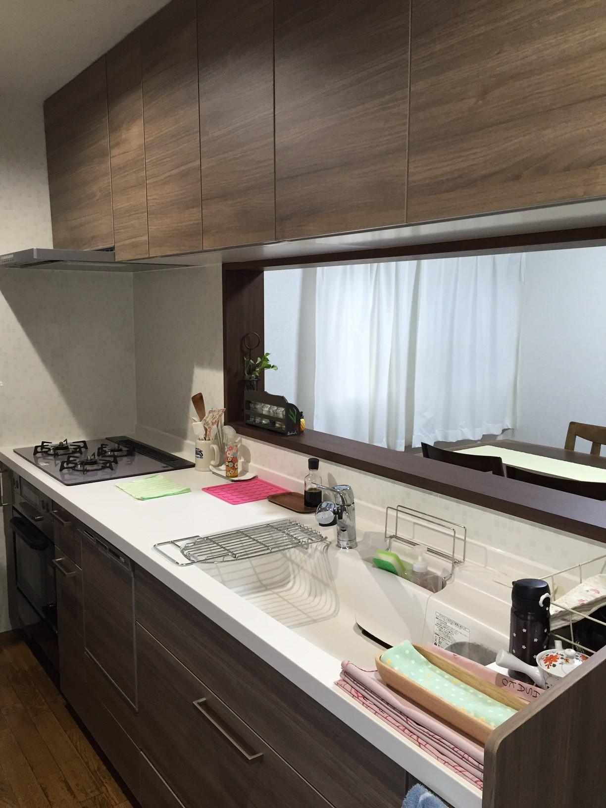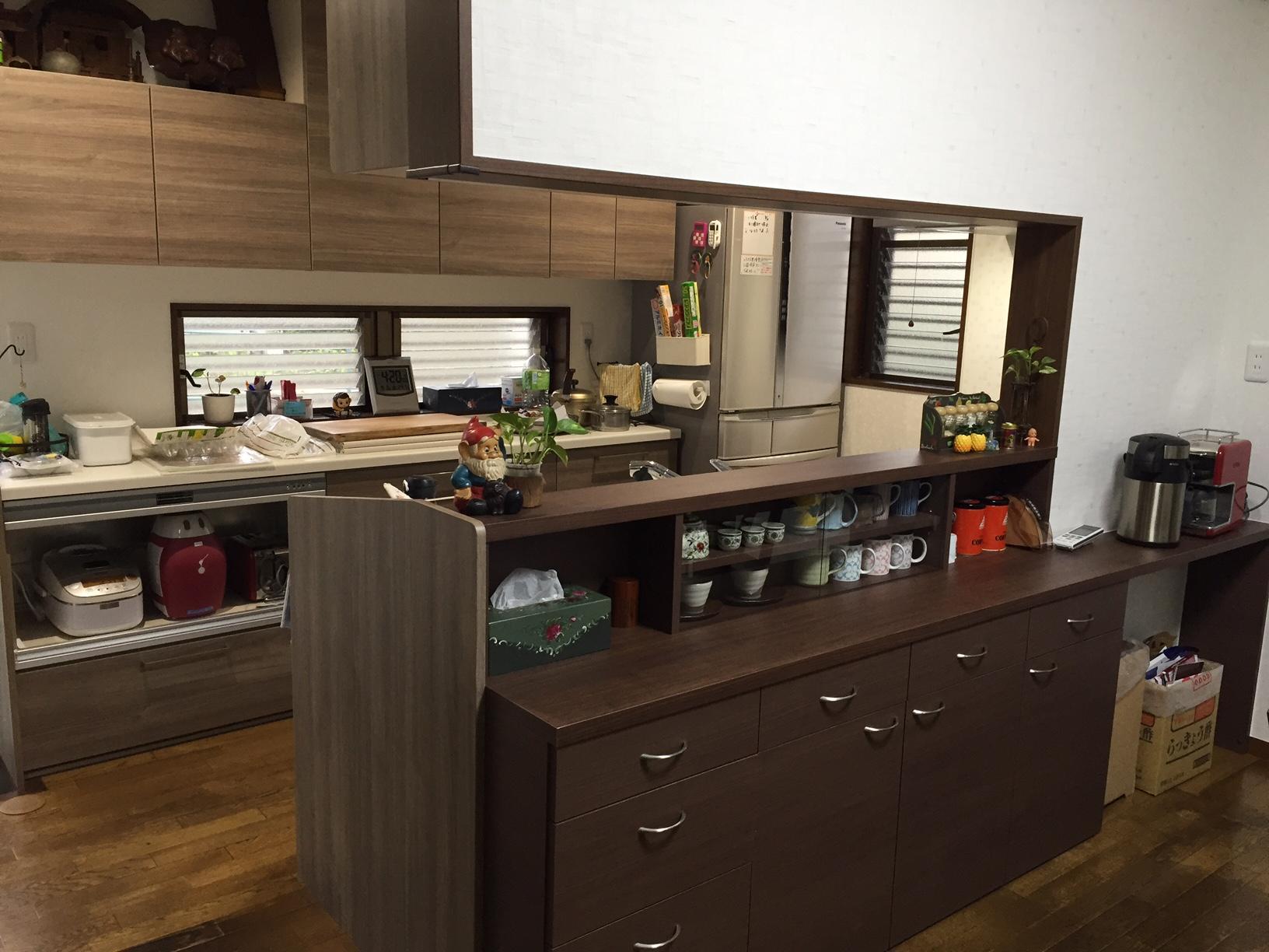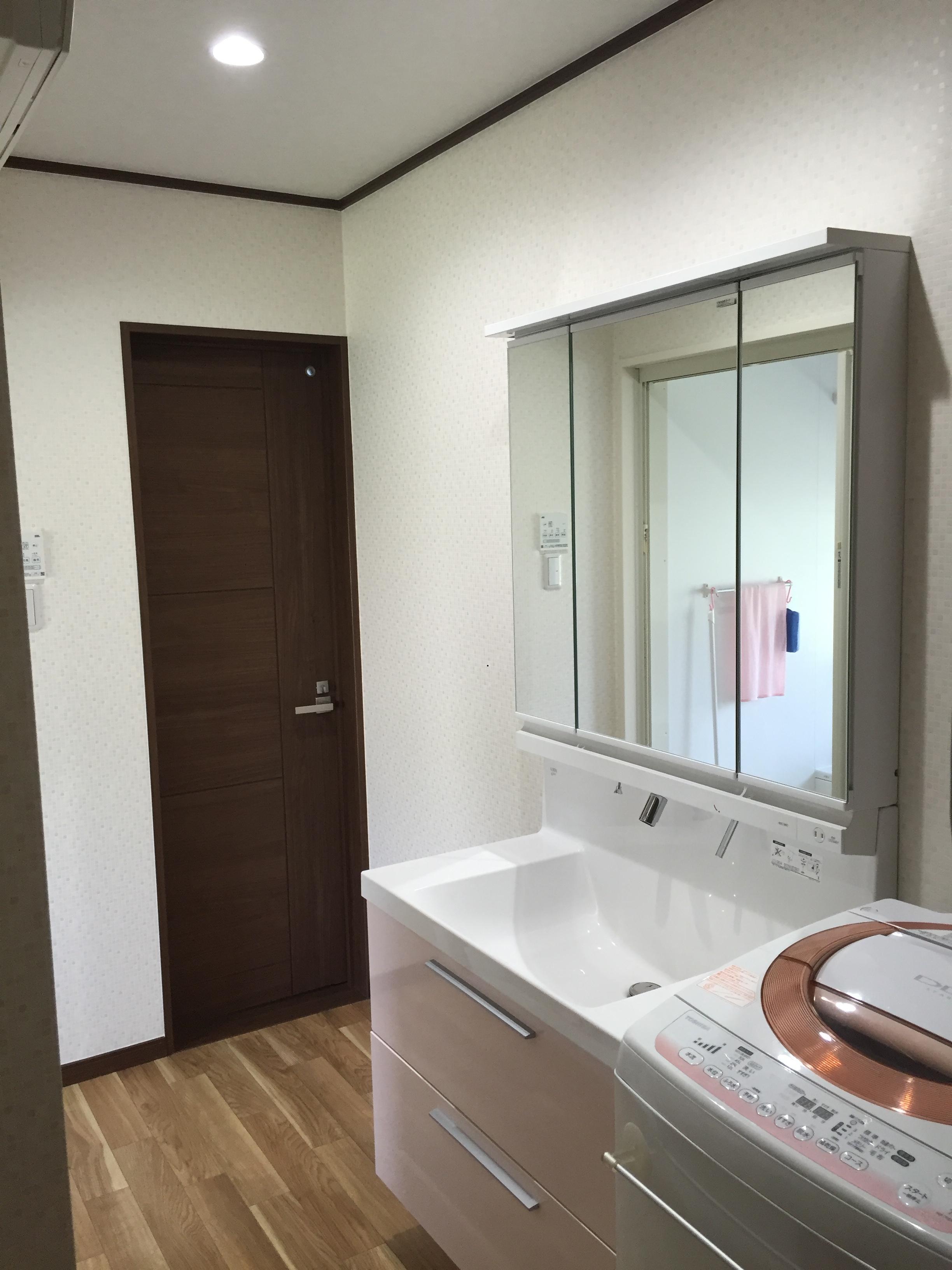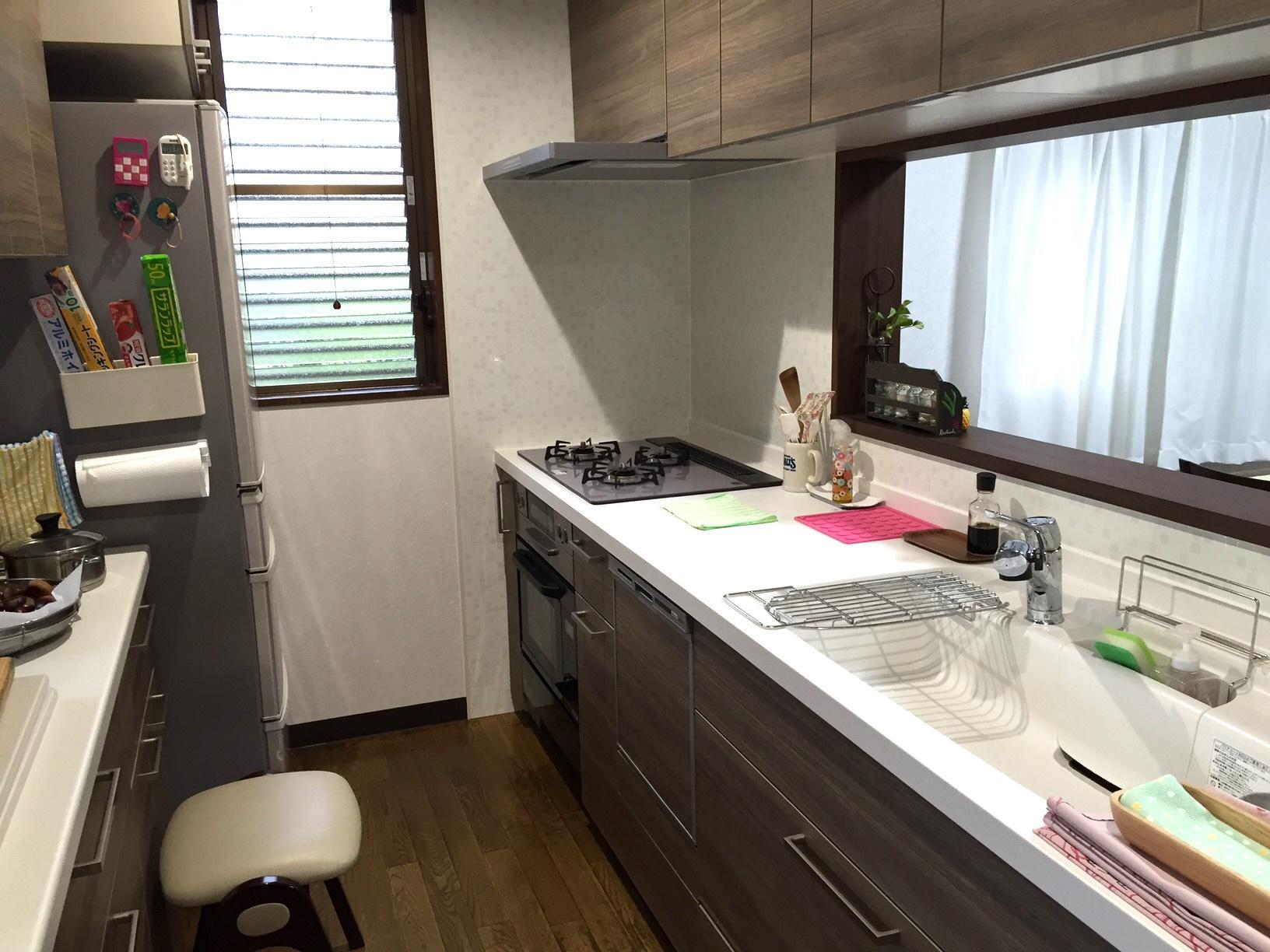 2つのトイレ・洗面室のある空間を有効活用するため、通し柱を抜き、新規で梁を設けることにより、仕切り位置を変更しました。また、引き戸の採用により明るく無駄のない空間となりました。 奥様こだわりのキッチンも十分な収納を確保出来るよう提案いたしました。 長期にわたる工事となり、ご不便をお掛けしましたが、仕上がり・使い勝手ともに大変満足して頂け、私たちも嬉しく思います。