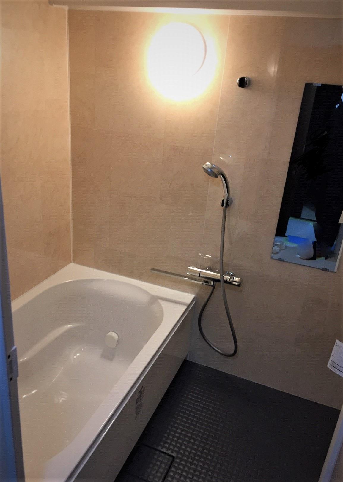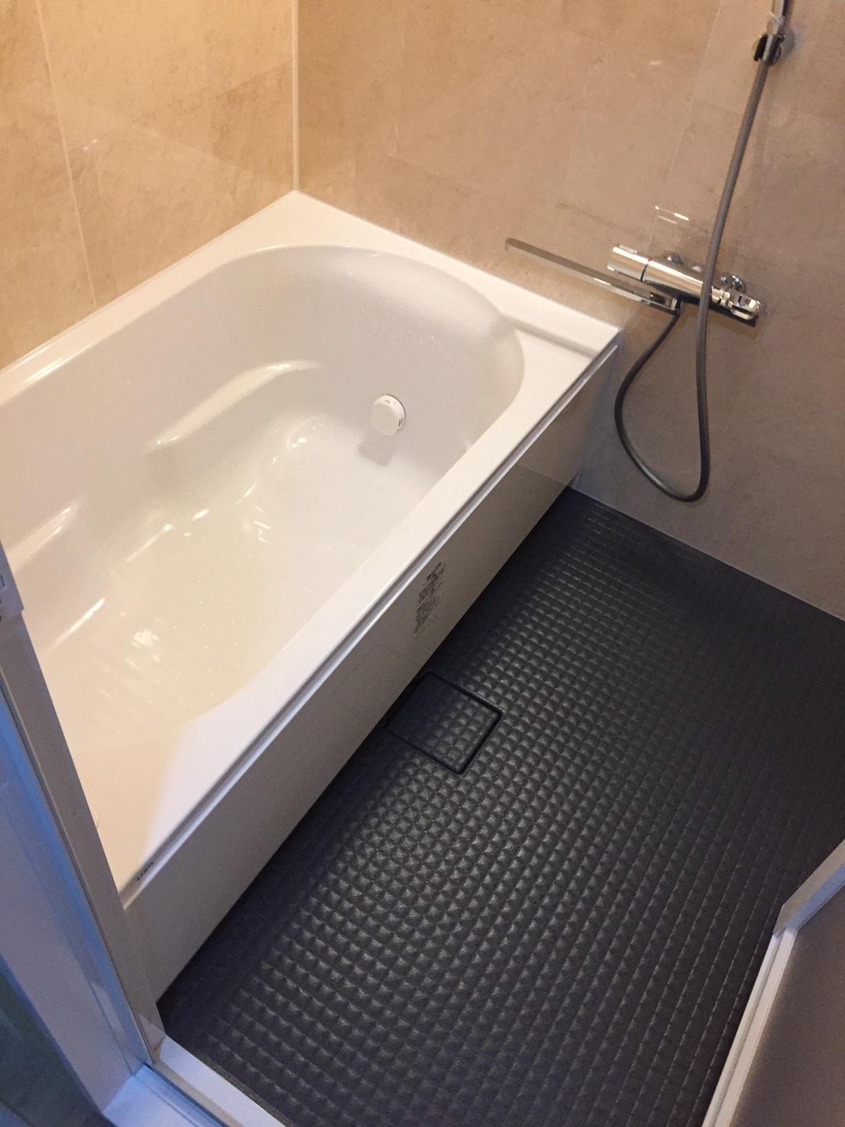 床面をシックな色合いにすることで落ち着いた雰囲気の浴室になりました