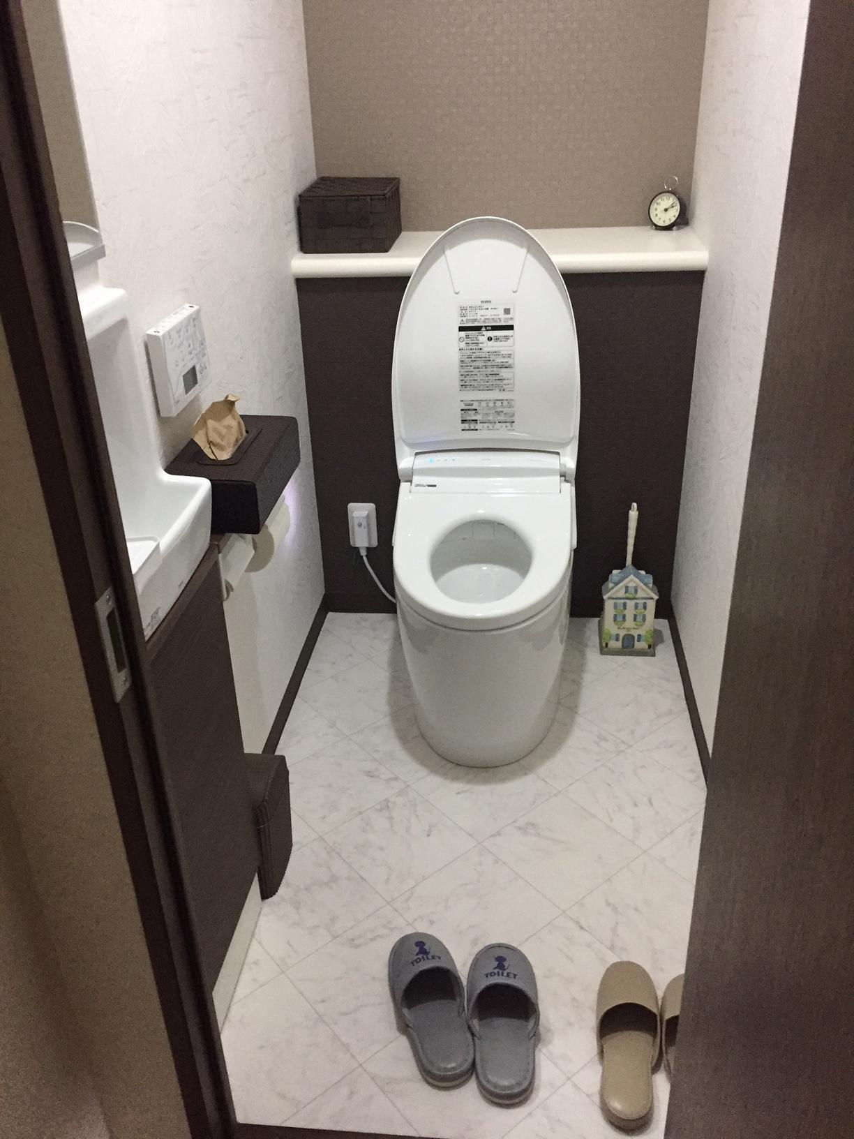タンクレストイレで見た目もすっきり、手洗い器は入口付近につけて使いやすくなりました。