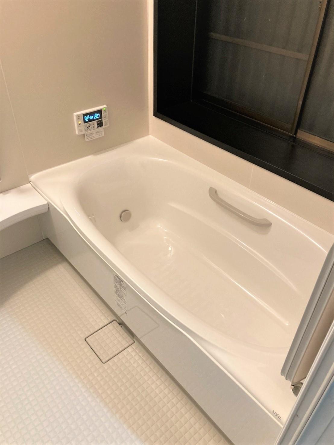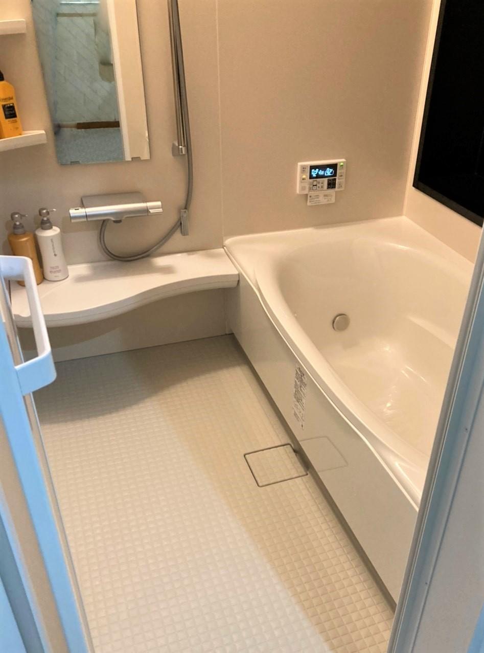 給湯器の故障をきっかけに浴室をリニューアルされました。 もともと広い浴室でしたので大きな浴槽を入れる事ができました。 以前よりとても暖かくなったとお喜び頂いています。