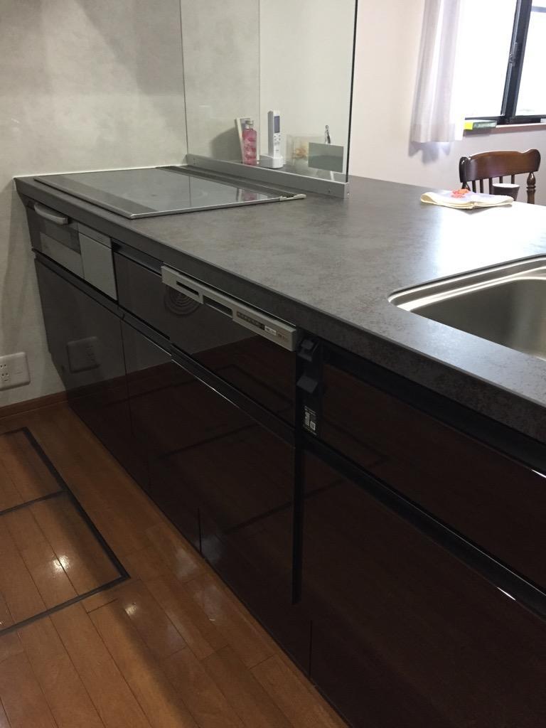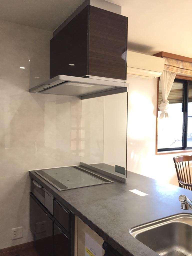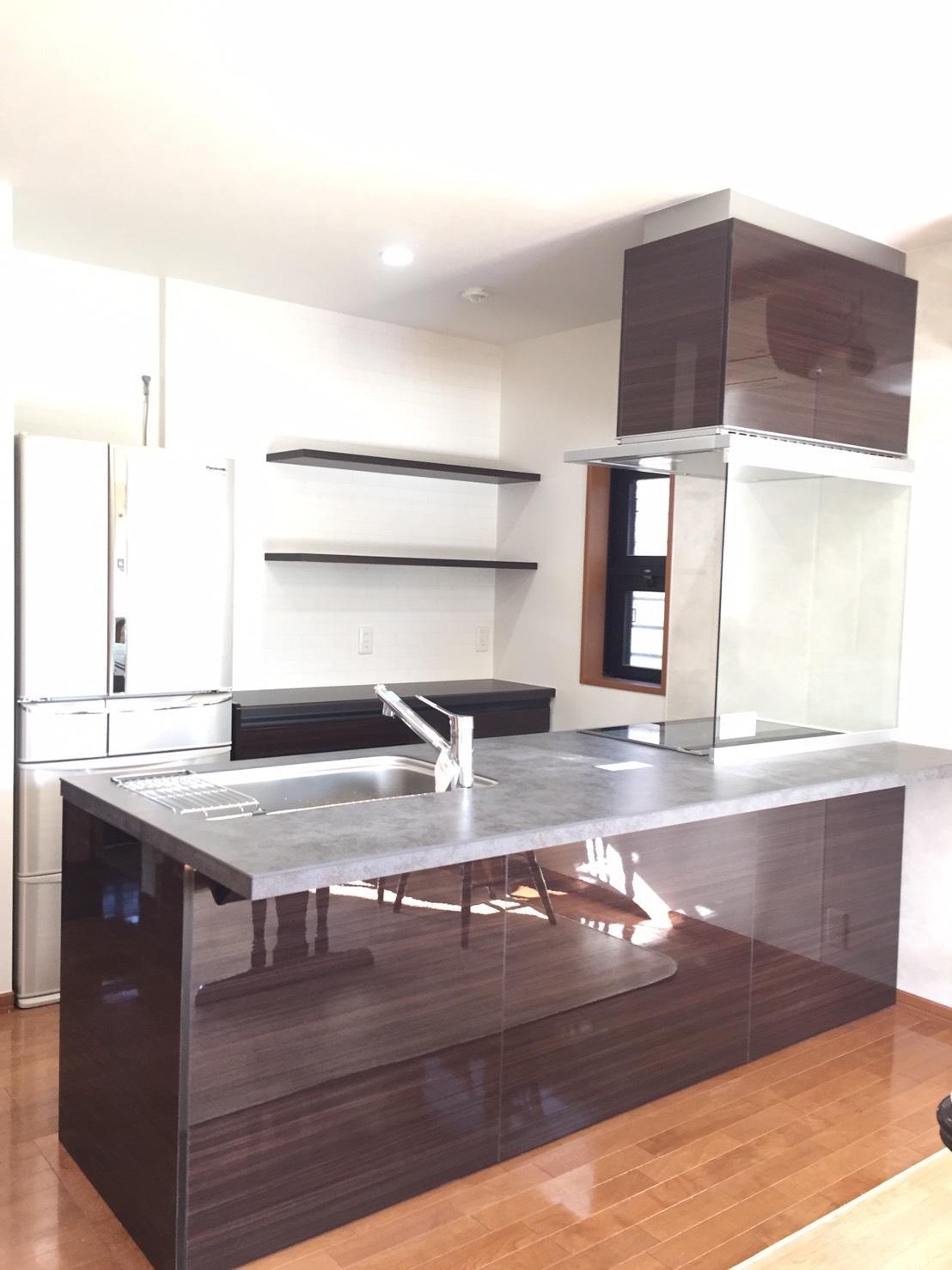 元々対面式キッチンでしたが、手元が隠れるよう腰壁が付いていました。 今回の工事では、腰壁撤去、レンジフード背面の壁を撤去し 開放感のあるキッチンになりました。 腰壁がなくなったことでお料理がキッチン~リビングと運びやすく、 会話もしやすくなりました。 今回は工事をご依頼いただきありがとうございました。