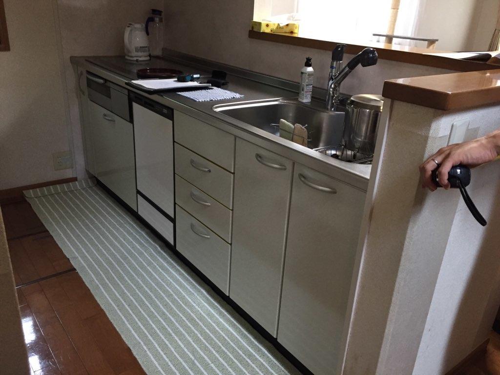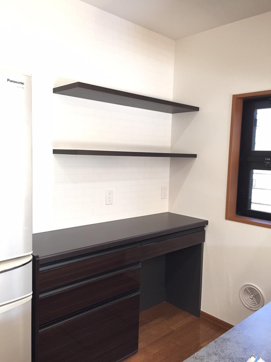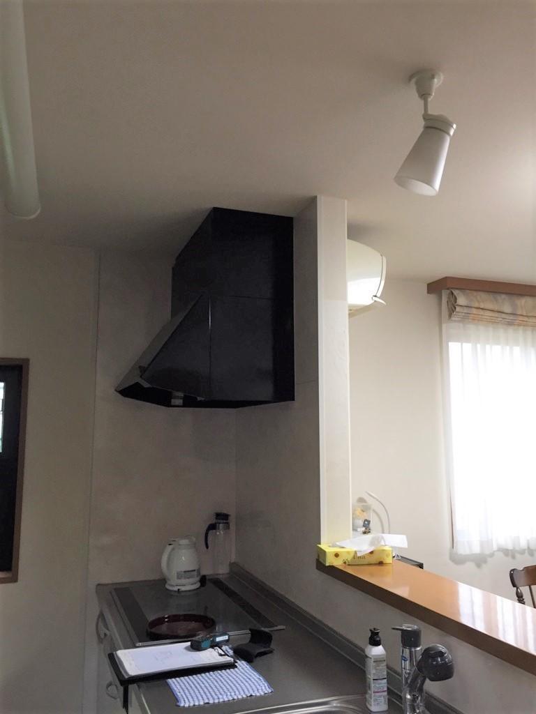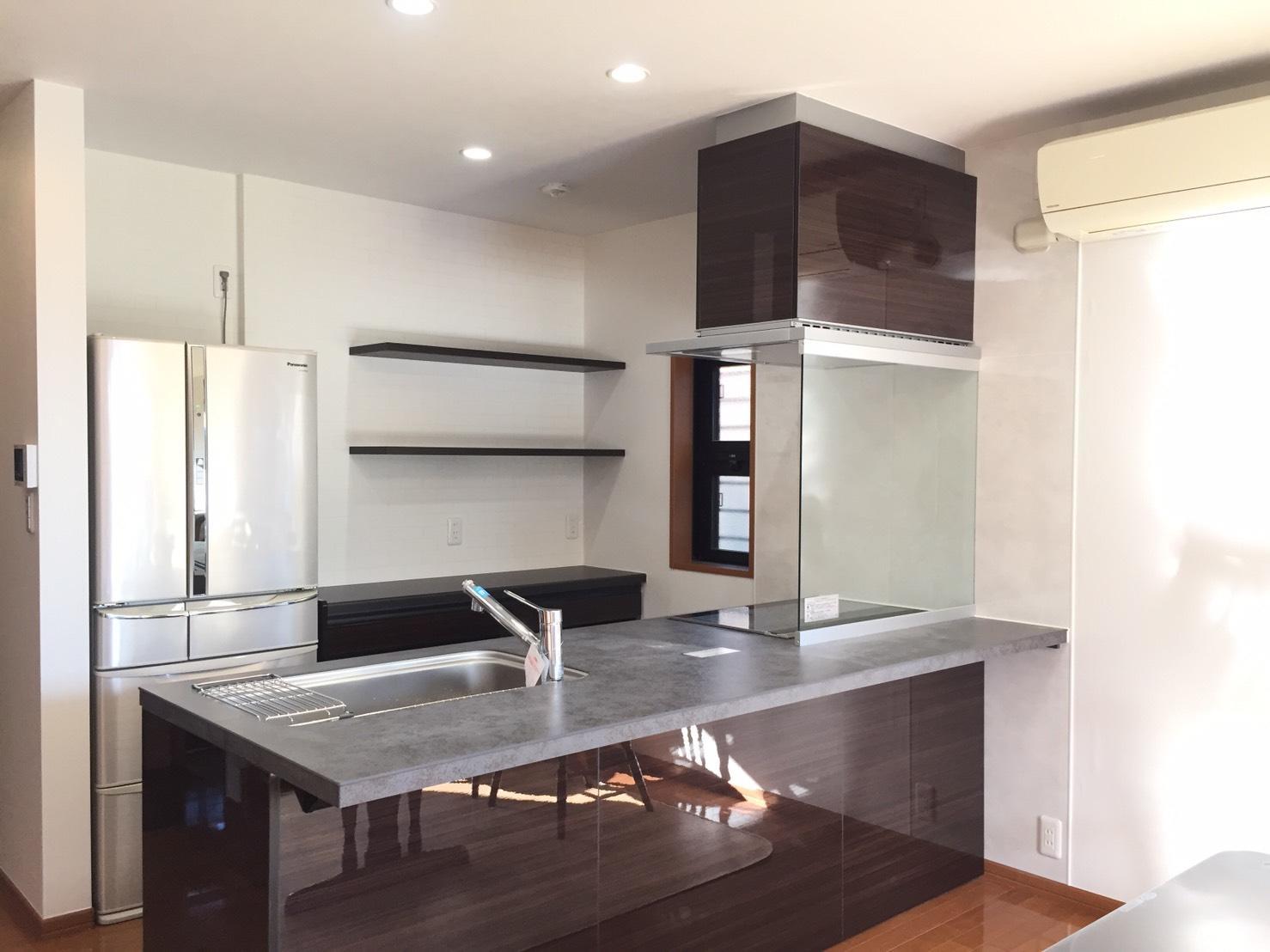 元々対面式キッチンでしたが、手元が隠れるよう腰壁が付いていました。 今回の工事では、腰壁撤去、レンジフード背面の壁を撤去し 開放感のあるキッチンになりました。 腰壁がなくなったことでお料理がキッチン~リビングと運びやすく、 会話もしやすくなりました。 今回は工事をご依頼いただきありがとうございました。