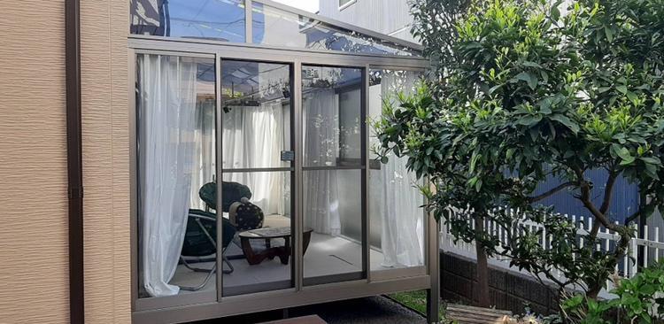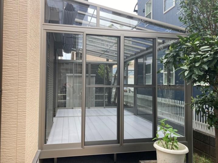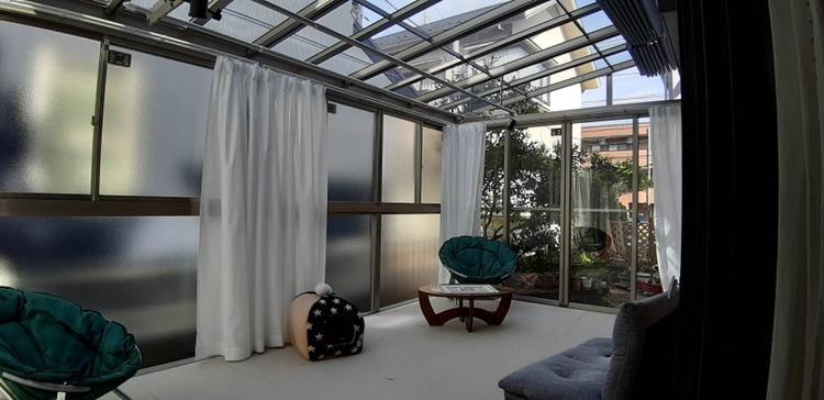 元々ウッドデッキのあった場所を愛犬のための空間としてサンルームにしました。 愛犬が走り回って遊んだり、洗濯物を干したり、1つの部屋として活用できるくつろぎの空間となりお客様にも喜んでいただいております。