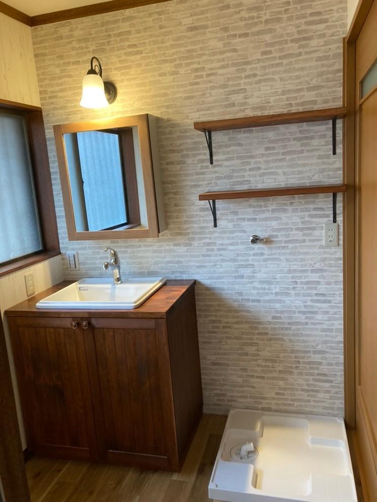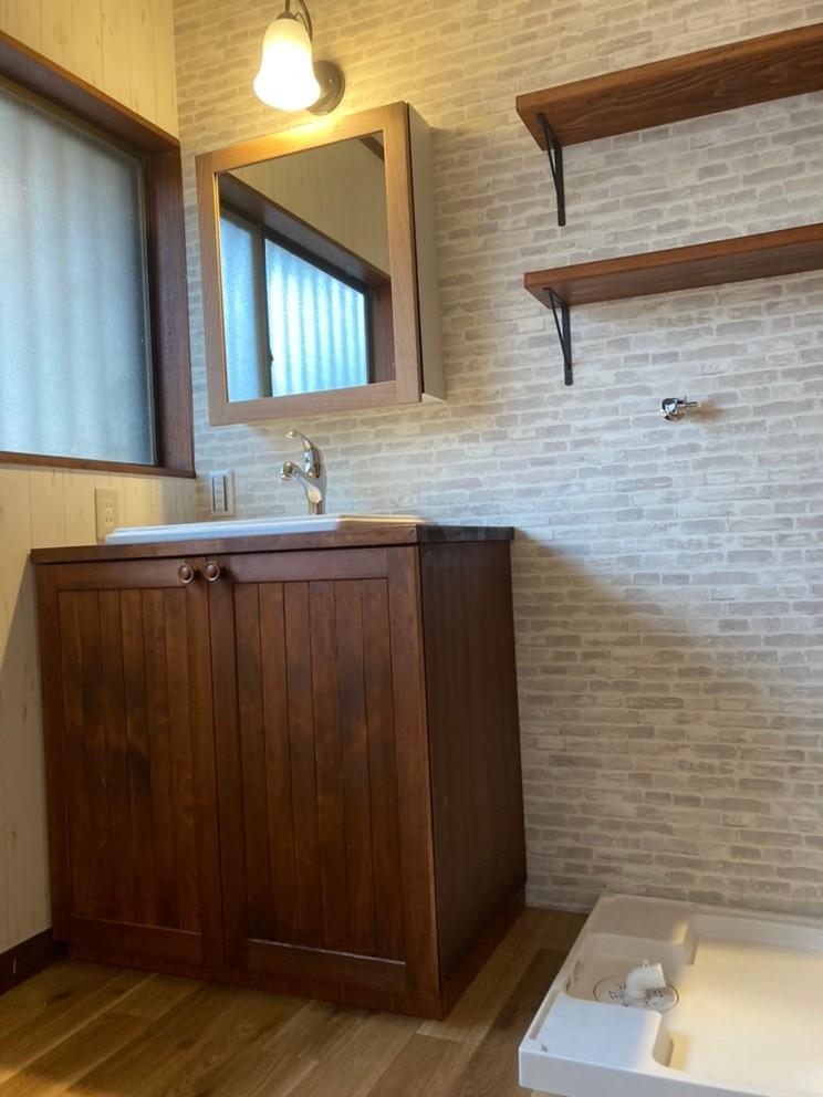 奥様にクロスや照明を選んでいただき、とてもセンスの良いやさしさの余韻が隅々にまで広がっていく洗面室ができました。