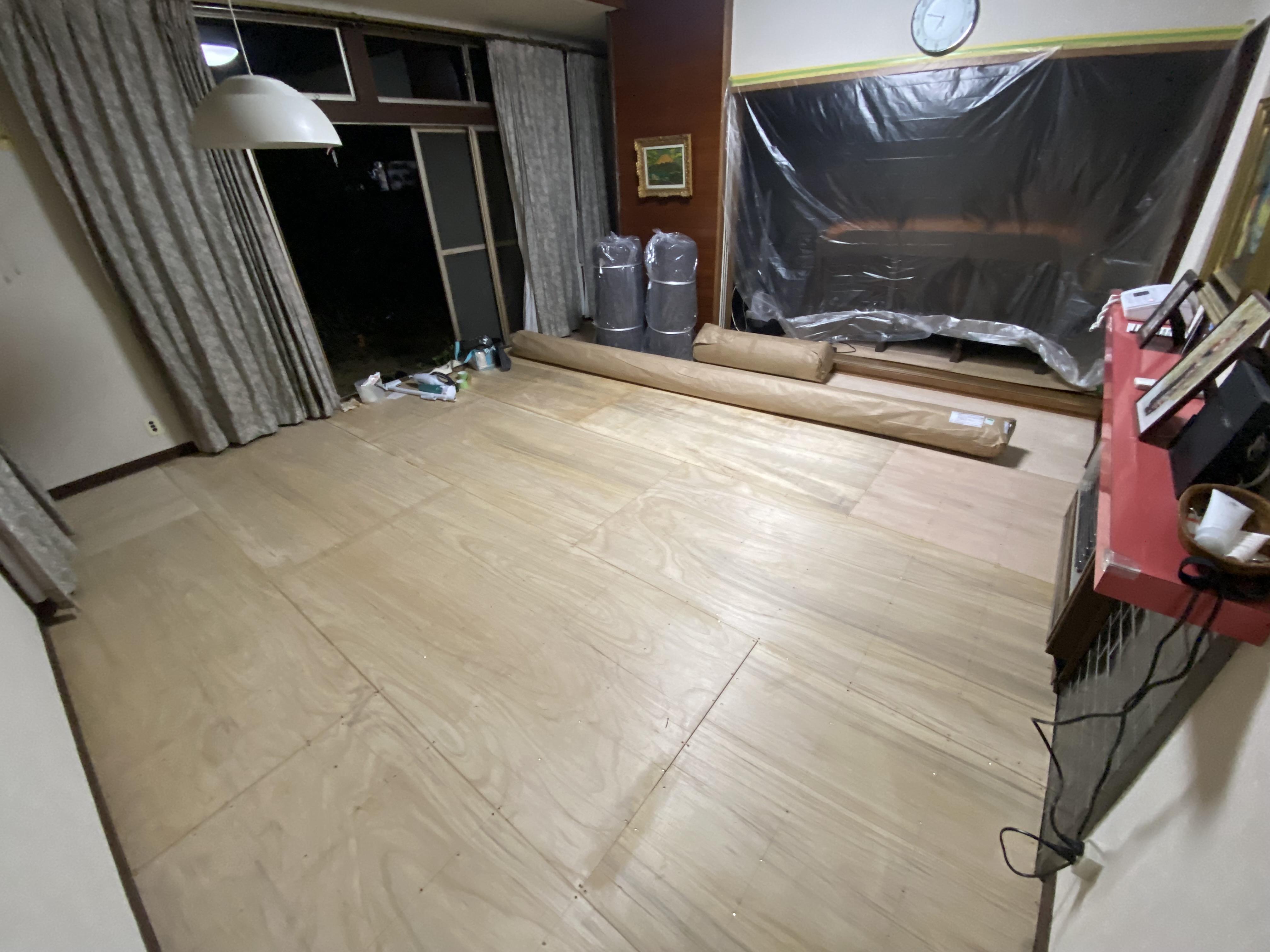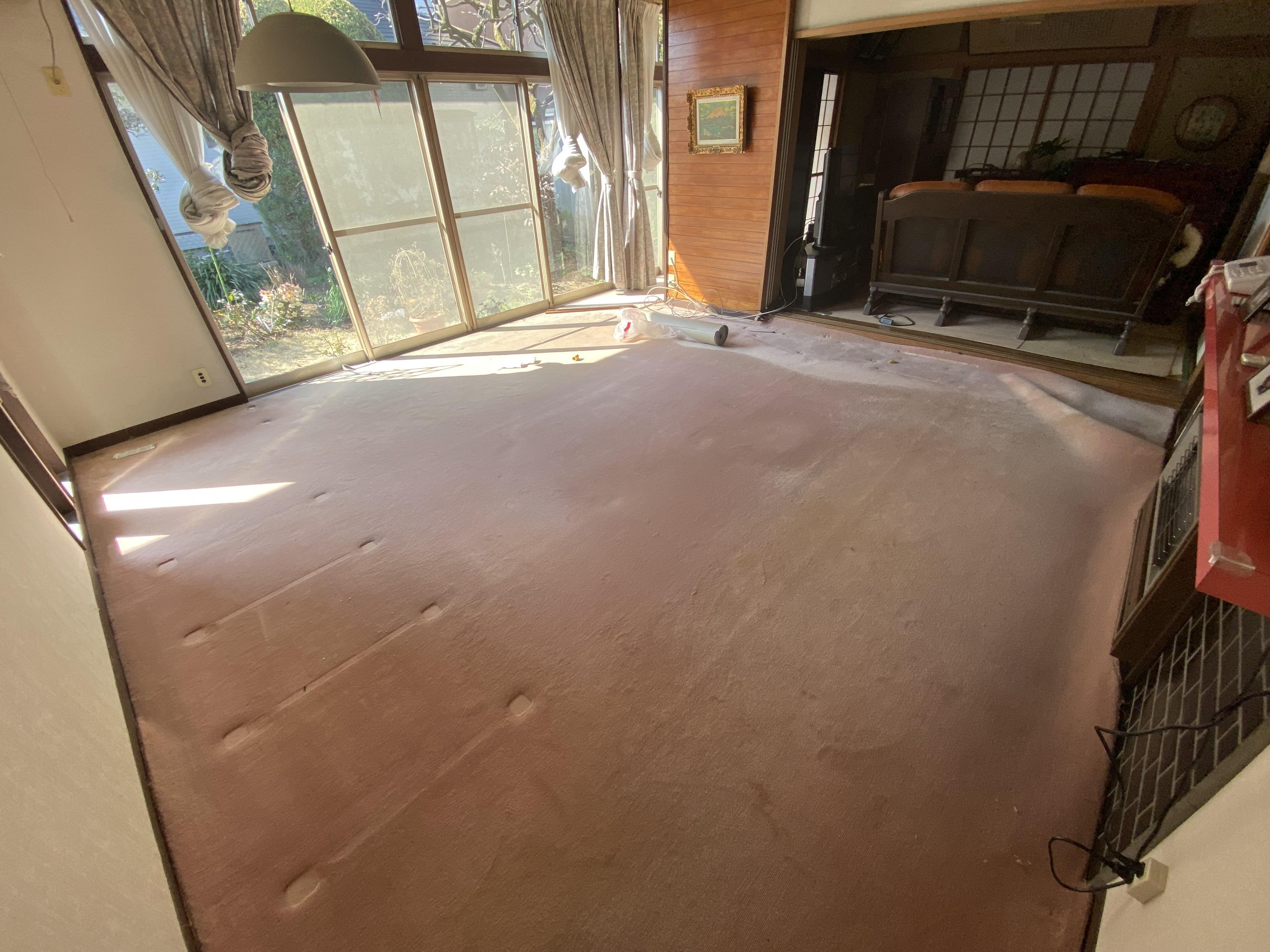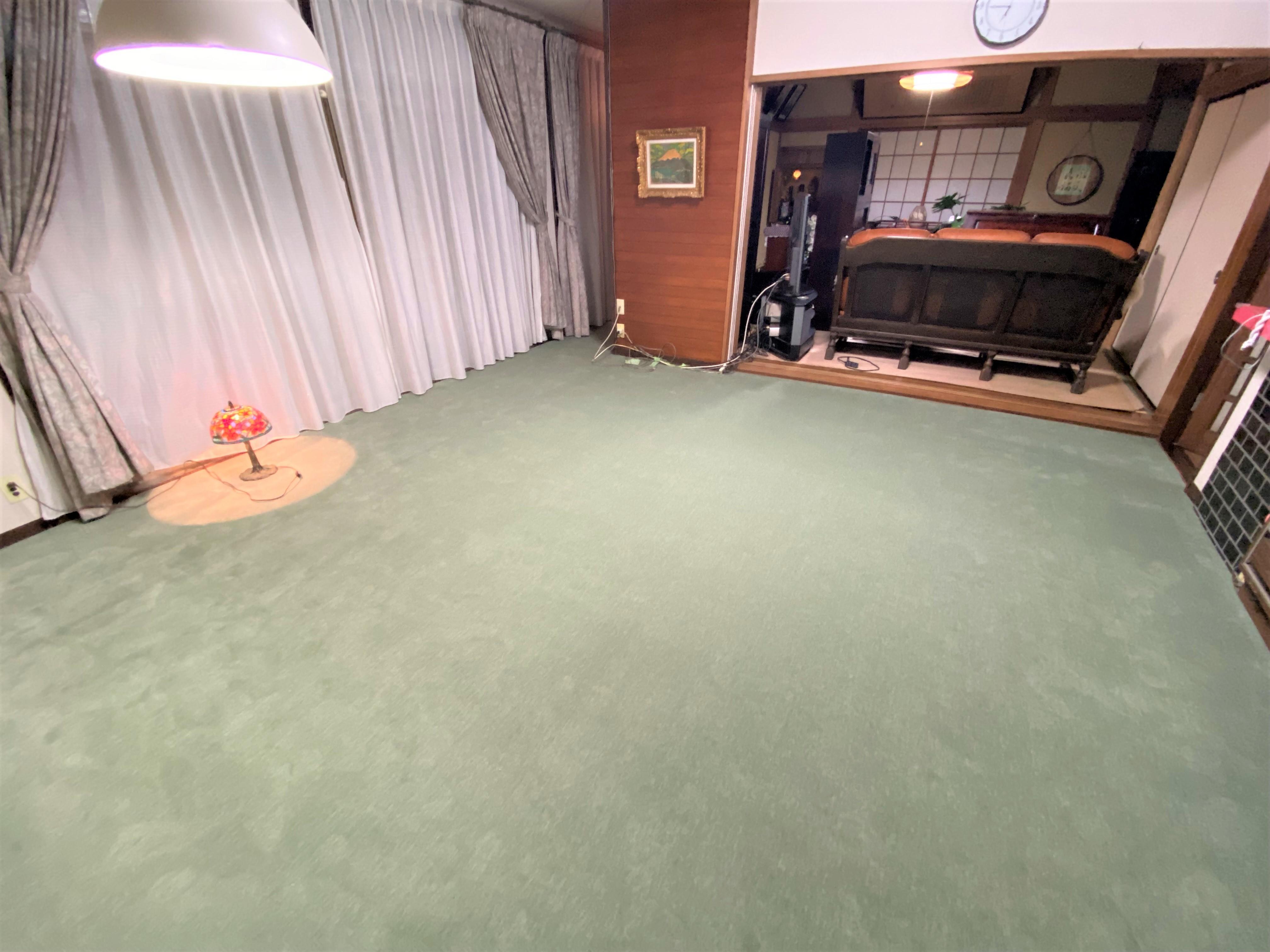 カーペットの下の床が経年で劣化してしまったので補強しました。 グリーンのカーペットを敷きなおしたら雰囲気がガラリと変わり、部屋も気分も一新されました。