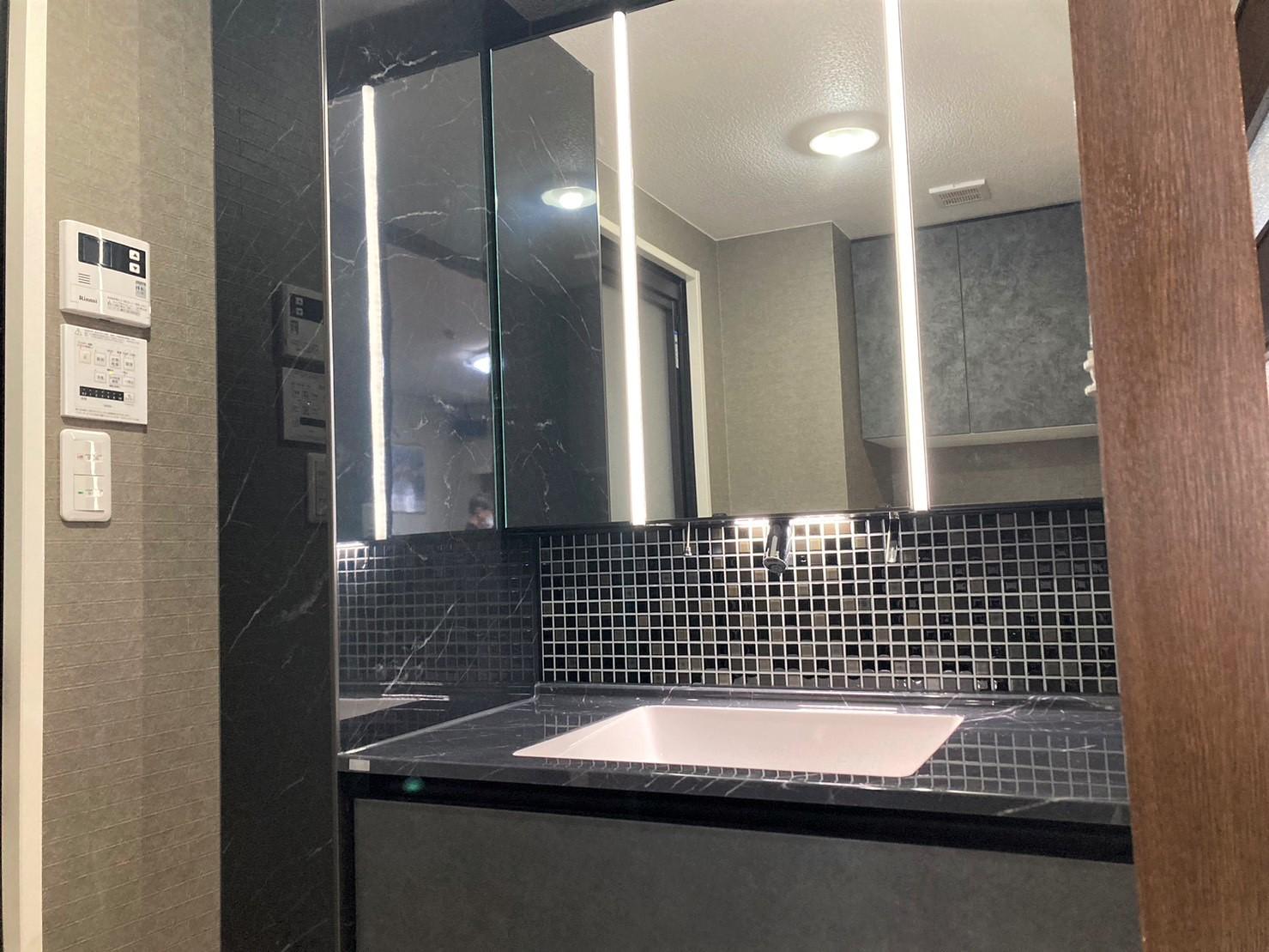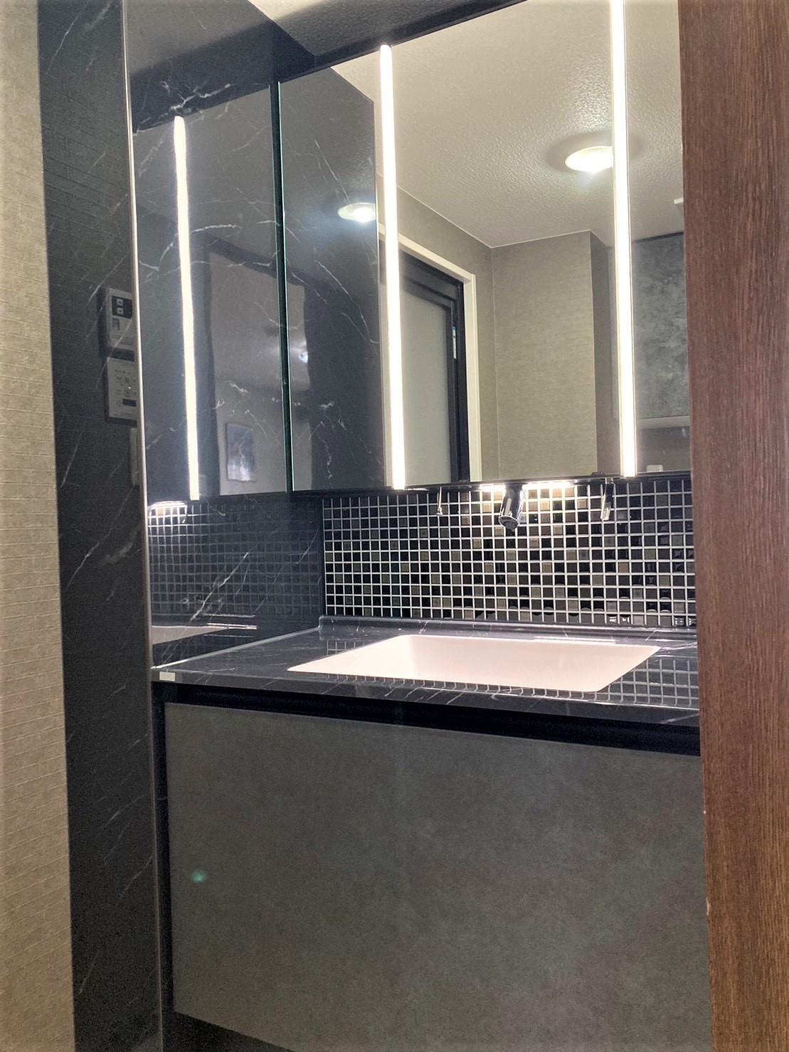 明るい雰囲気だった洗面やトイレから重厚感のあるシックな趣にリニューアルしました。