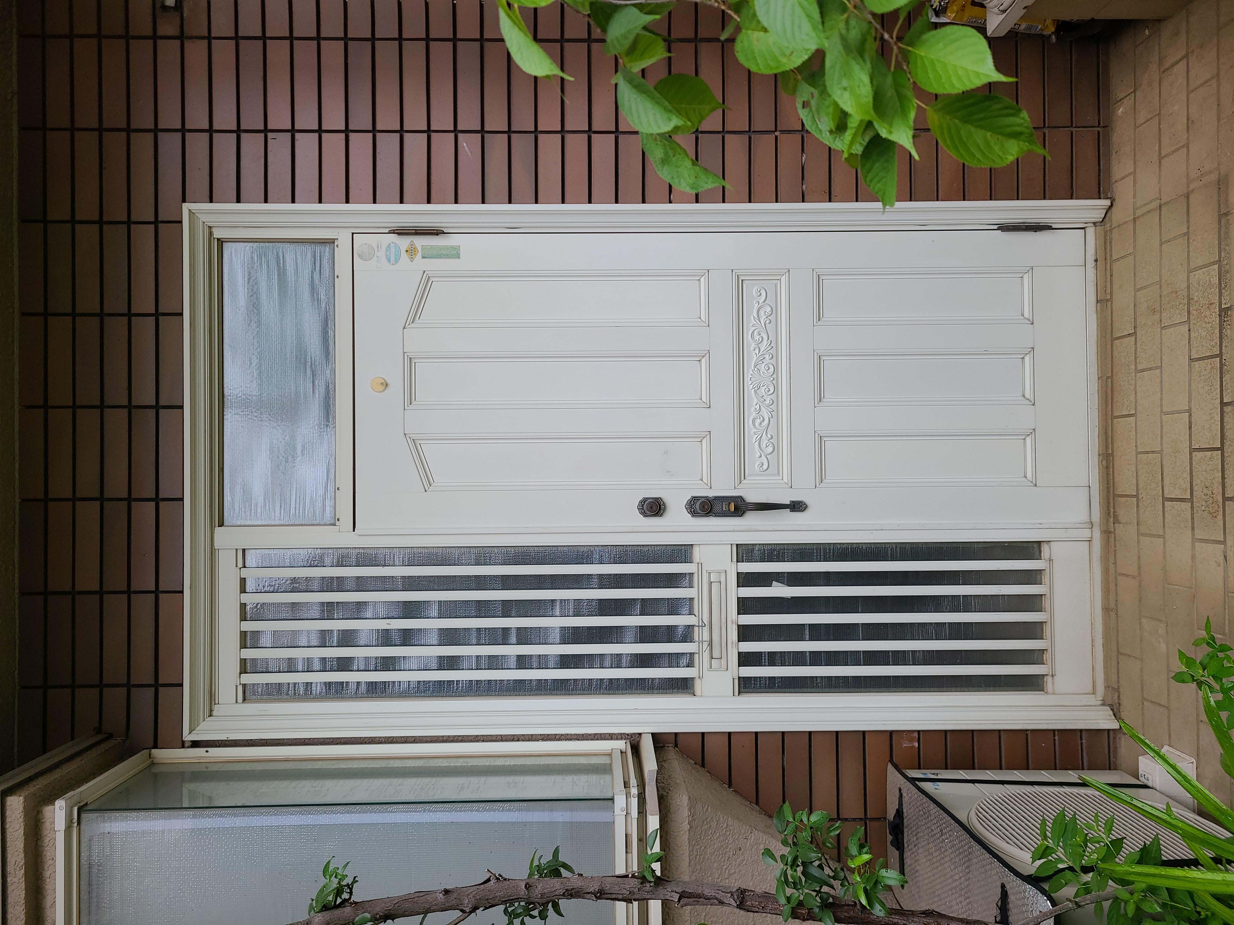 カバー工法で玄関ドアをリニューアルしました。 既存のドアの上の方のランマを無くし、袖の部分も少なくなったので、 ドアのサイズが大きくなり、大きな物も出し入れしやすくなりました。 断熱性もアップしたので、家の中も快適です。