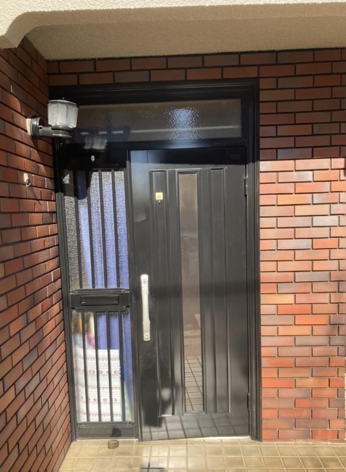 玄関ドアをリニューアルしました。 欄間を無くし、ドアが大きくなったので、 大きな荷物を持っていても出入りしやすくなりました。 外からの光は取り込みつつ、中の断熱性はアップしたので より省エネでより快適になりました。