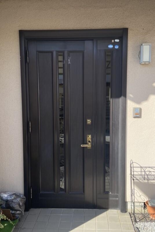 玄関ドアをカバー工法でリニューアルしました。 色を明るくしたことで、玄関まわり全体が明るくなりました。 断熱性能に優れているので冬も夏も部屋の中への外気からの影響が軽減され、 室内が快適に過ごせます。