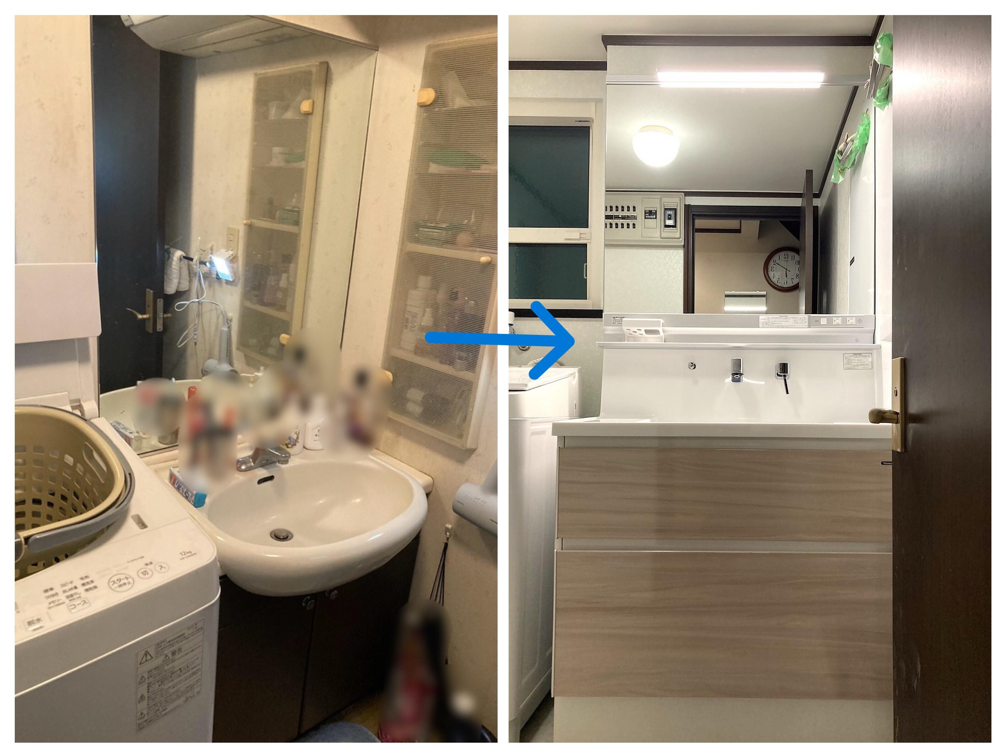 浴室・キッチン・洗面(タカラ)の3点を丸ごとリニューアルされ、明るくすっきりした空間になりました。ガス給湯器をエコキュートに交換し、キッチンのコンロもIHにしたのでフラットでお掃除もしやすく使いやすくなりました。