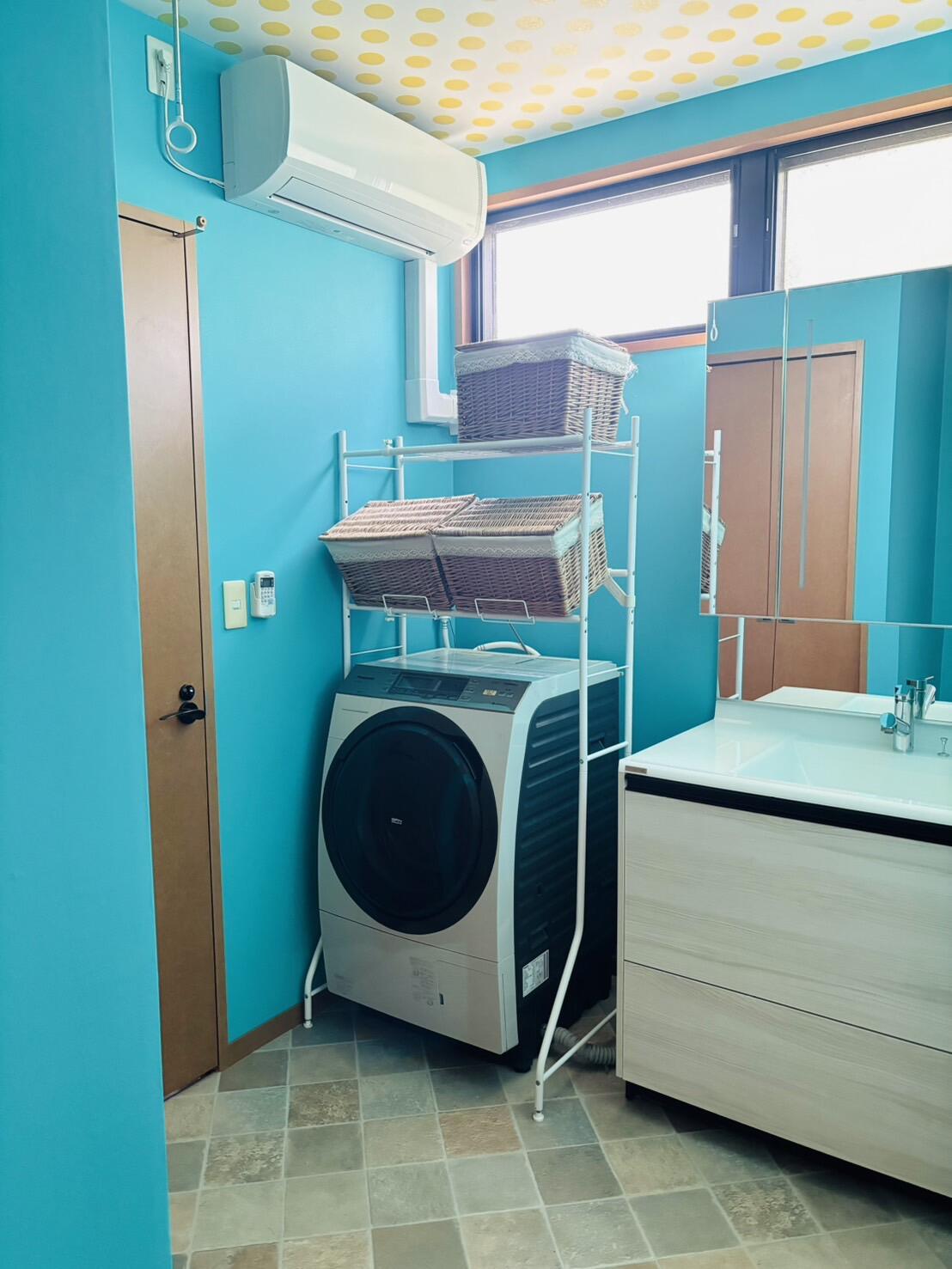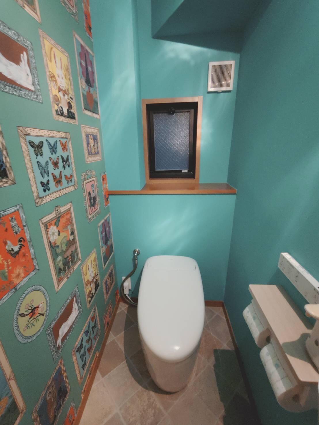 お客様の好みの空間にしたいと、壁紙をじっくりお選びいただきました。 きれいなターコイズ色のお客様お気に入りの空間となりました。 壁紙が変わっただけでも部屋の印象がガラッと変わるので、お客様がたくさんの壁紙の中からお気に入りを見つけられると嬉しく思います。