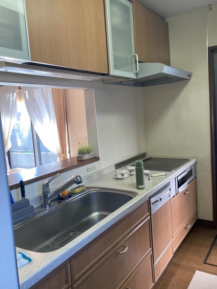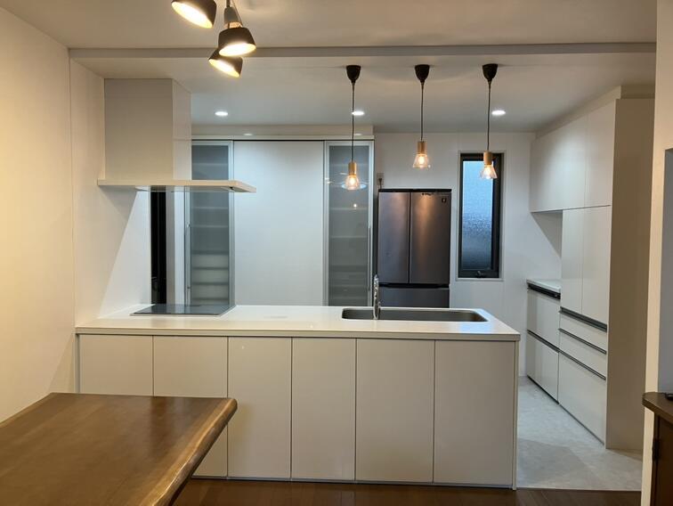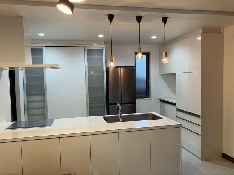キッチン前面の壁と吊戸は撤去し、LDKがひろびろ見渡せるキッチンに。新たにキッチン収納を設け、収納量も確保しました。