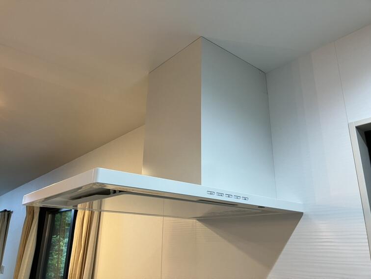 扉カラー、レンジフードなどホワイトを選択。もともとあった背面収納の木目パネルにはホワイト色のシートを貼り、クリーンな印象のキッチン空間に変身しました。