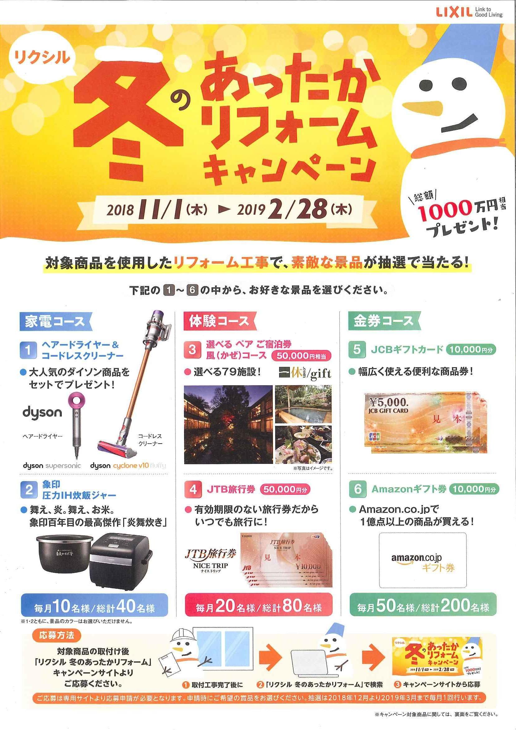 対象商品を使用したリフォーム工事で、素敵な商品が抽選で当たります。