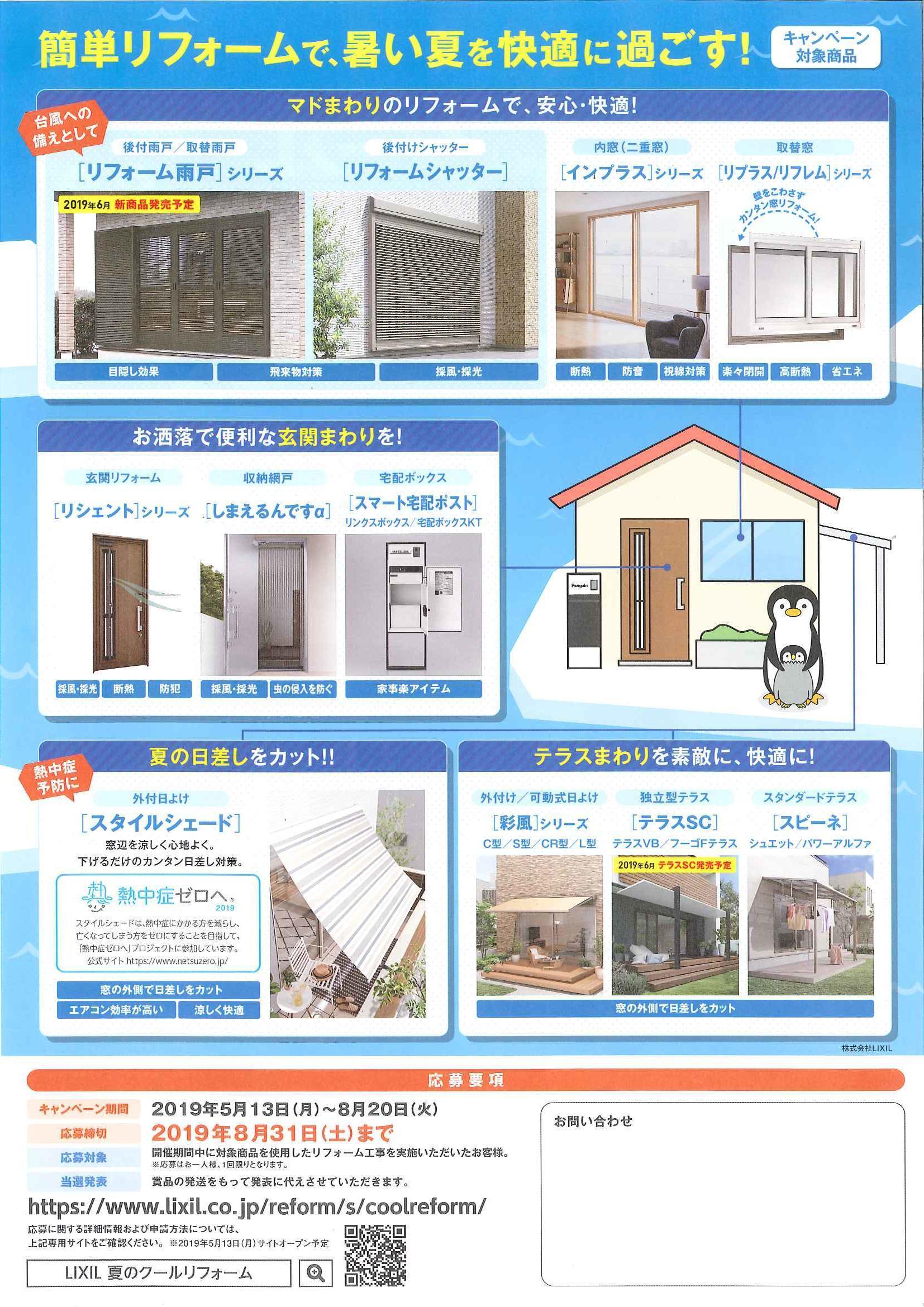 応募対象:スタイルシェード(外付け日よけ)、インプラス(内窓)、リフォームシャッターなど