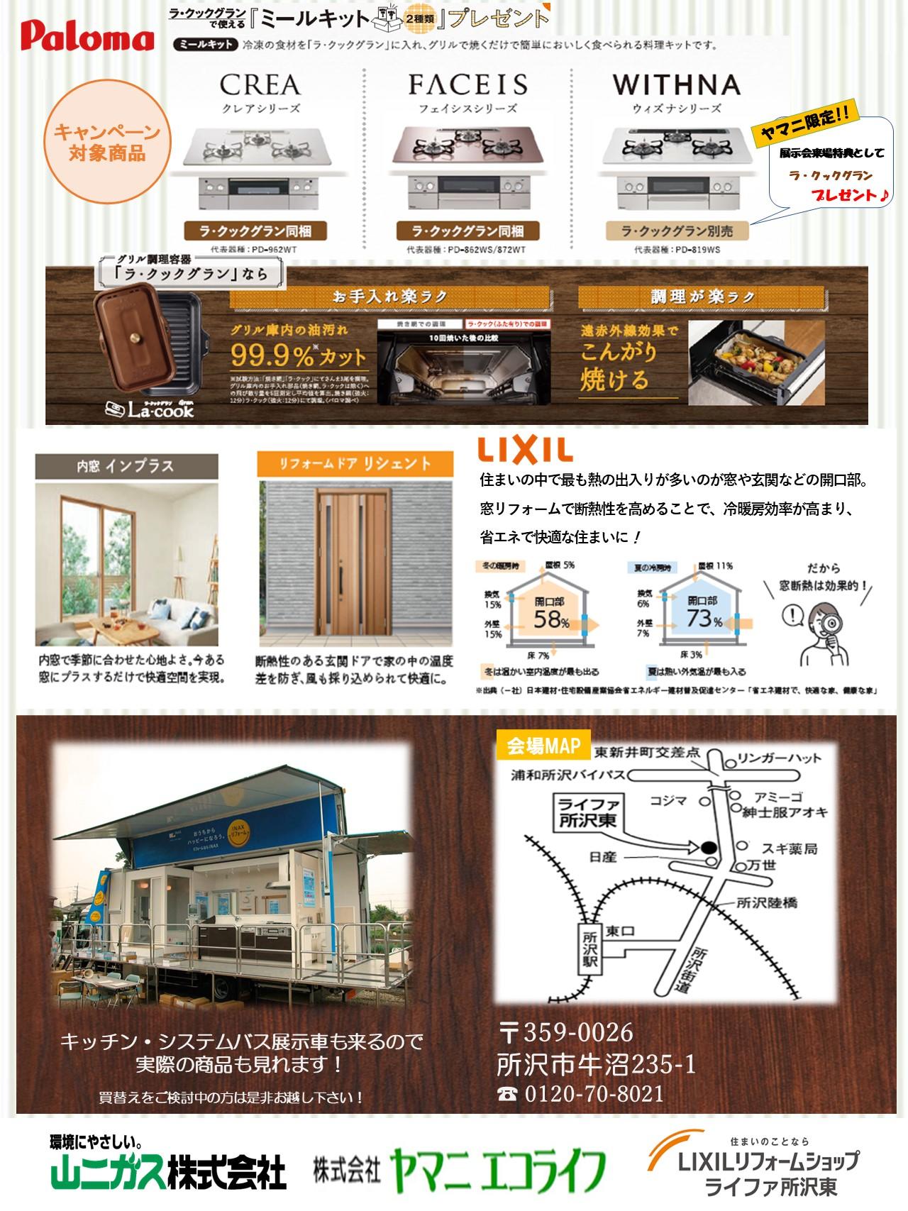 水廻り商品やガス機器の展示、災害時用のガス発電機の実演もございます。