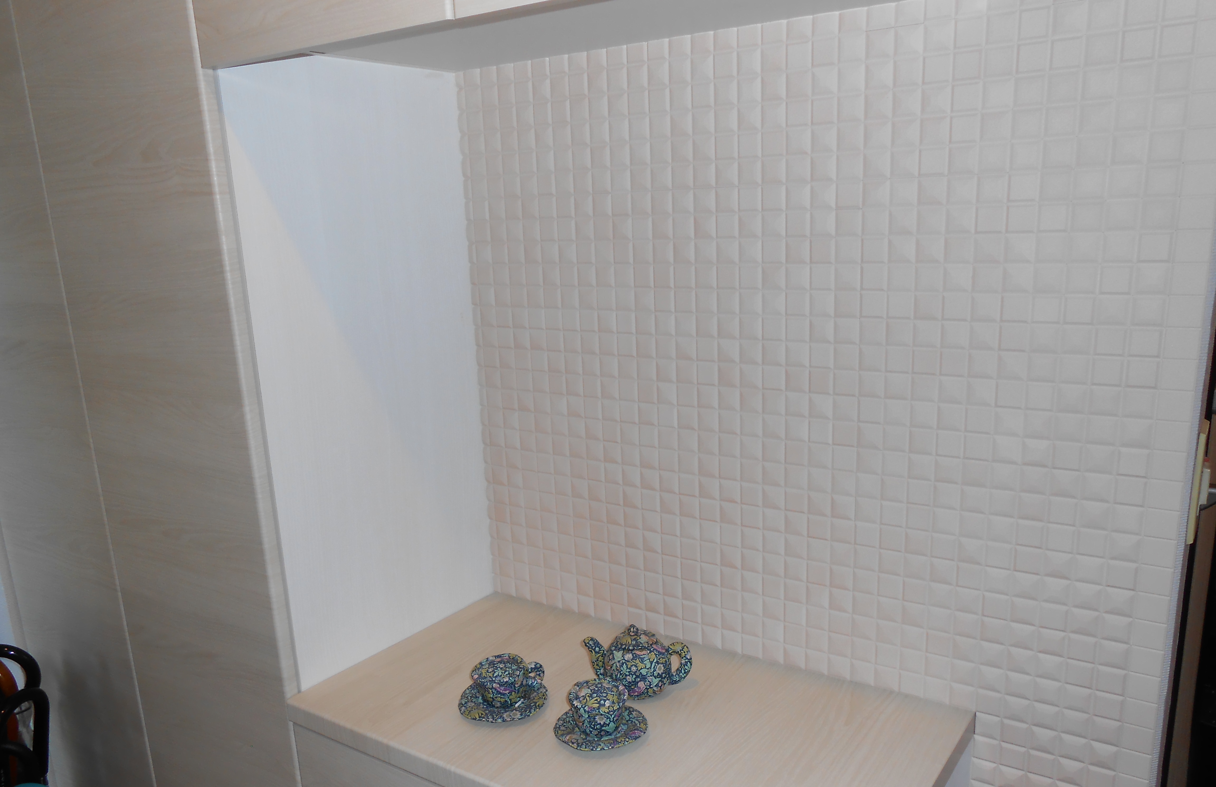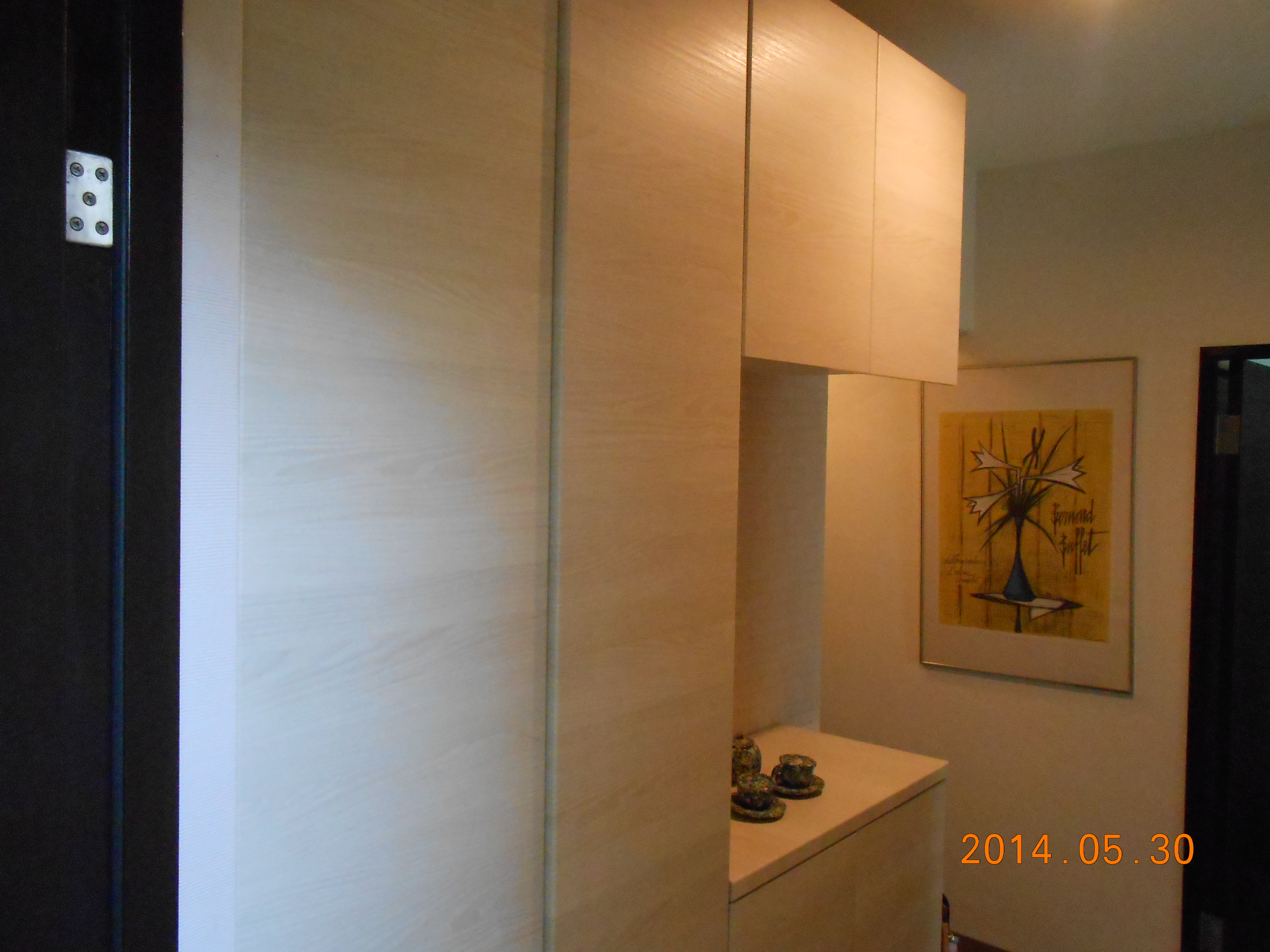 どうしても狭くて、暗くなりがちなマンションの玄関スペースですが、LIXILのエコカラットと照明を工夫することで、彩りを増すことが出来ました。