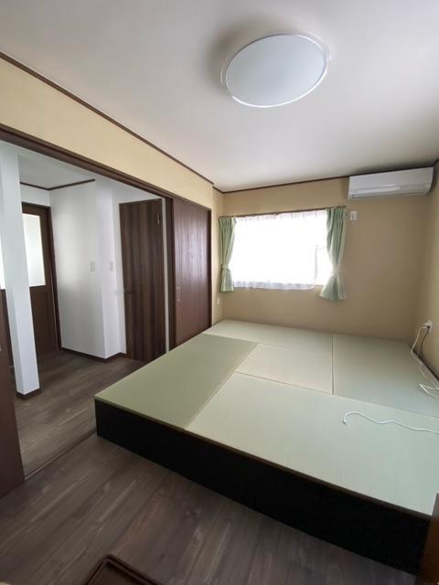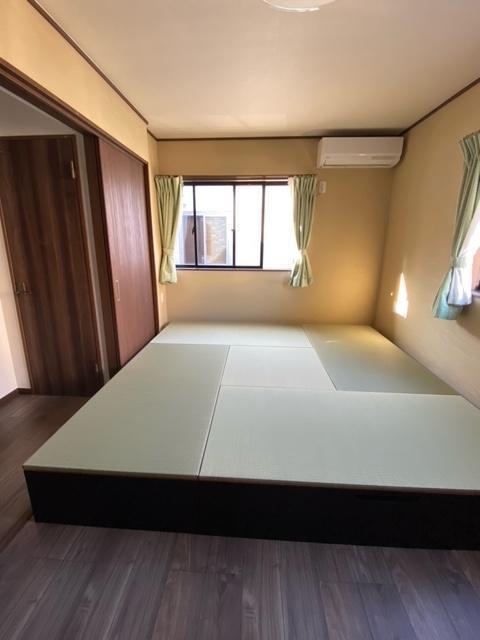 2階の子供部屋2室の間仕切壁を撤去、隣の寝室も入口開口部を広げ、4.5帖の収納型置き畳を設置。 すべてのお部屋開放でワンフロア風になるように施工。 耐震面なども考慮し、一部柱を残し梁を設置したりと、少しでもお客様のご希望に近い間取りになるよう、 沢山のプランを作成し、お打ち合わせをして、施工に至りました。
