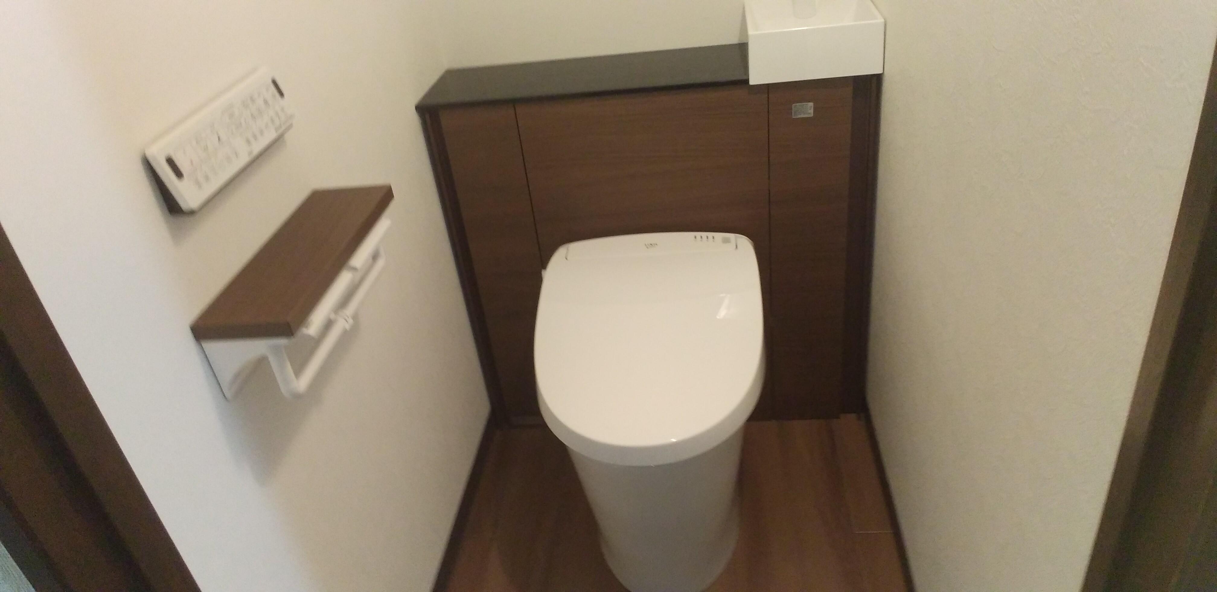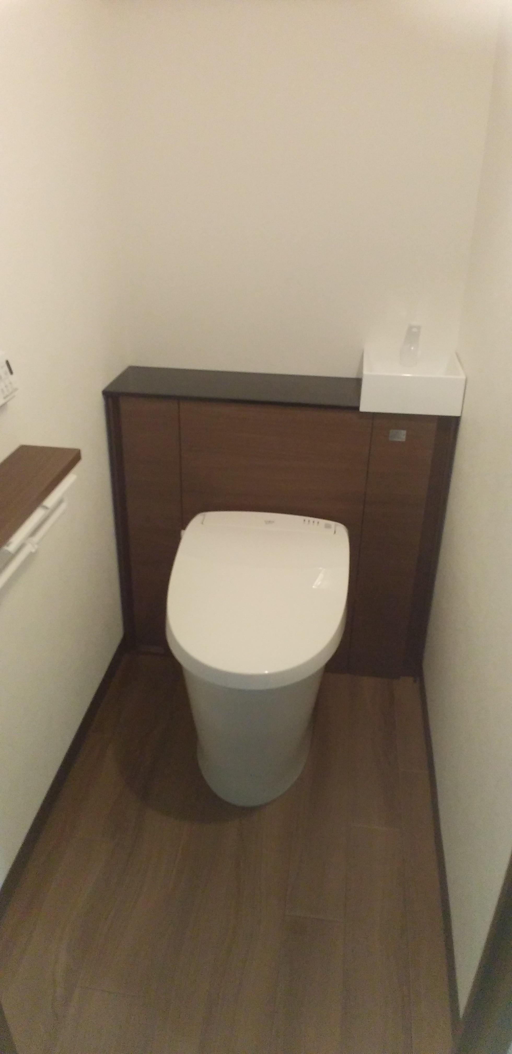 収納と一体感のスッキリとしたおトイレ空間に…。
